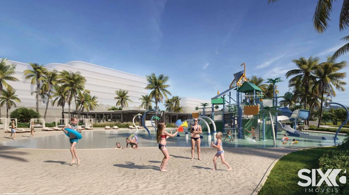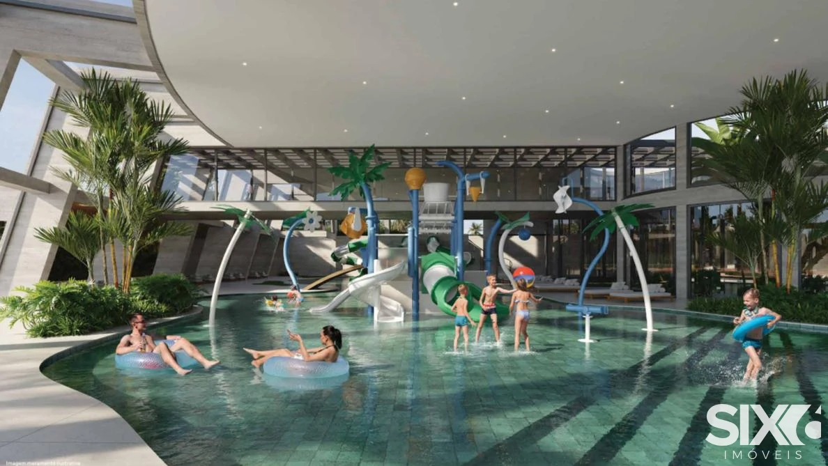 Piscina com praia de areia, trazendo a experiência de um paraíso particular, parque aquático completo, com opções para todas as idades, parque aquático térmico para utilização em todas as estações, piscina com raia semiolímpica, perfeita para treinos, point gourmet à beira d’água, Bistrô com vista para o lago.