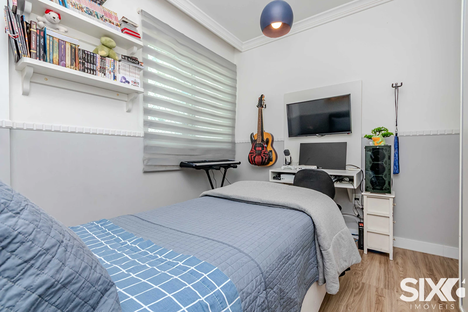 01 suíte + 2 quartos, sala de estar e jantar, banheiro social, sacada gourmet com churrasqueira a carvão, cozinha, área de serviço, semi-mobiliado, 2 vagas de garagem.