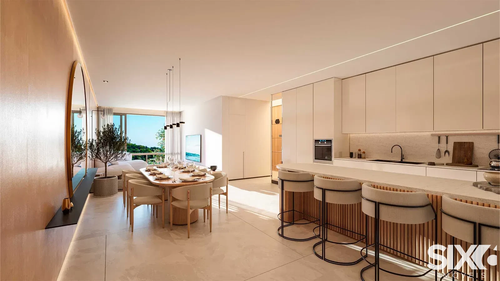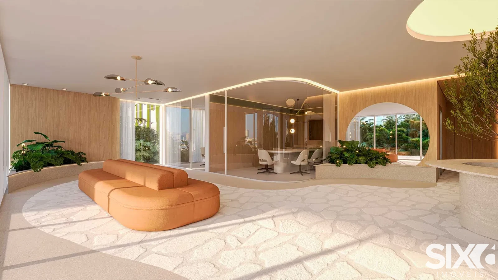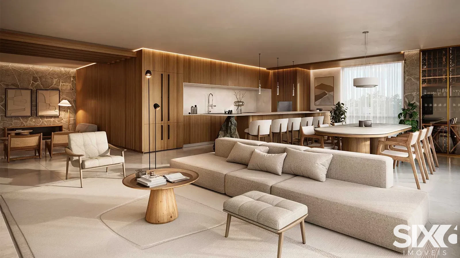 São 01 suíte + 02 quartos espaçosos com excelente iluminação natural e ventilação, lavabo com design moderno, living integrado com sala de estar, jantar e cozinha, cozinha integrada ao living, lavanderia independente, 02 vagas de garagem.