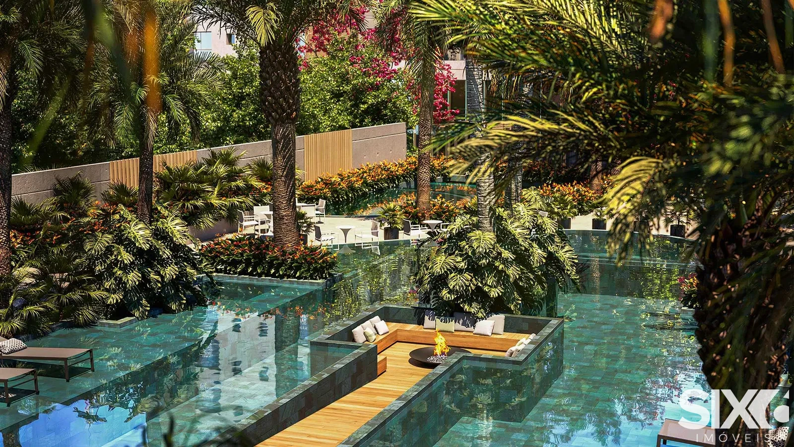 Academia, brinquedoteca, espaço gourmet, playground, pub, sala de jogos, salçao de festas, sauna, spa, espaço zen, espelho d'água, sala de massagem, playground, quiosque com churrasqueira á carvão, quadra poliesportiva, winw bar, lounge, espaço beauty, academia externa, piscina funda, piscina rasa, quadra de beach tênis,