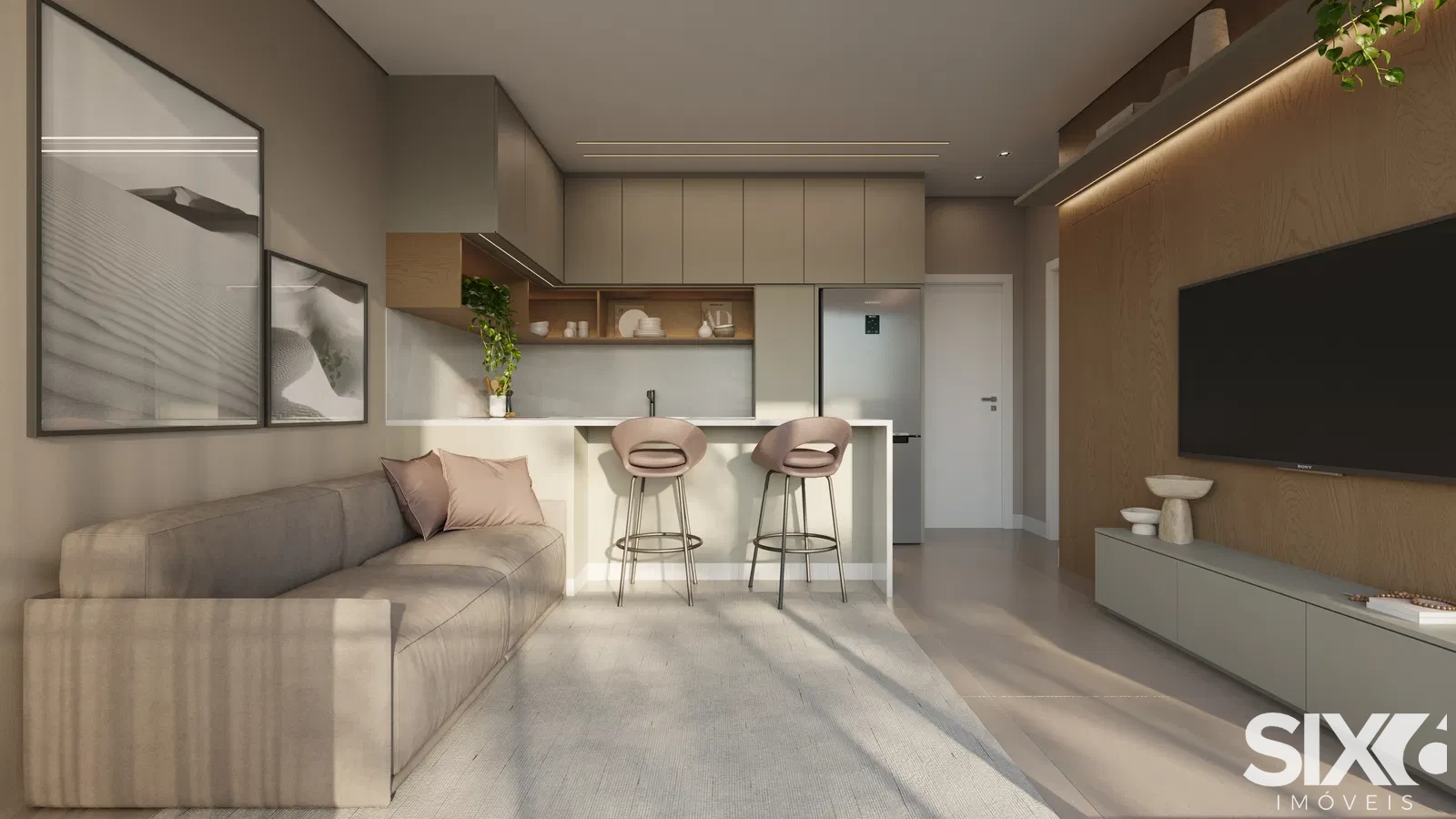 01 suíte aconchegante, 01 banheiro social moderno, sala de estar integrada ao living, cozinha planejada, 1 vaga de garagem.