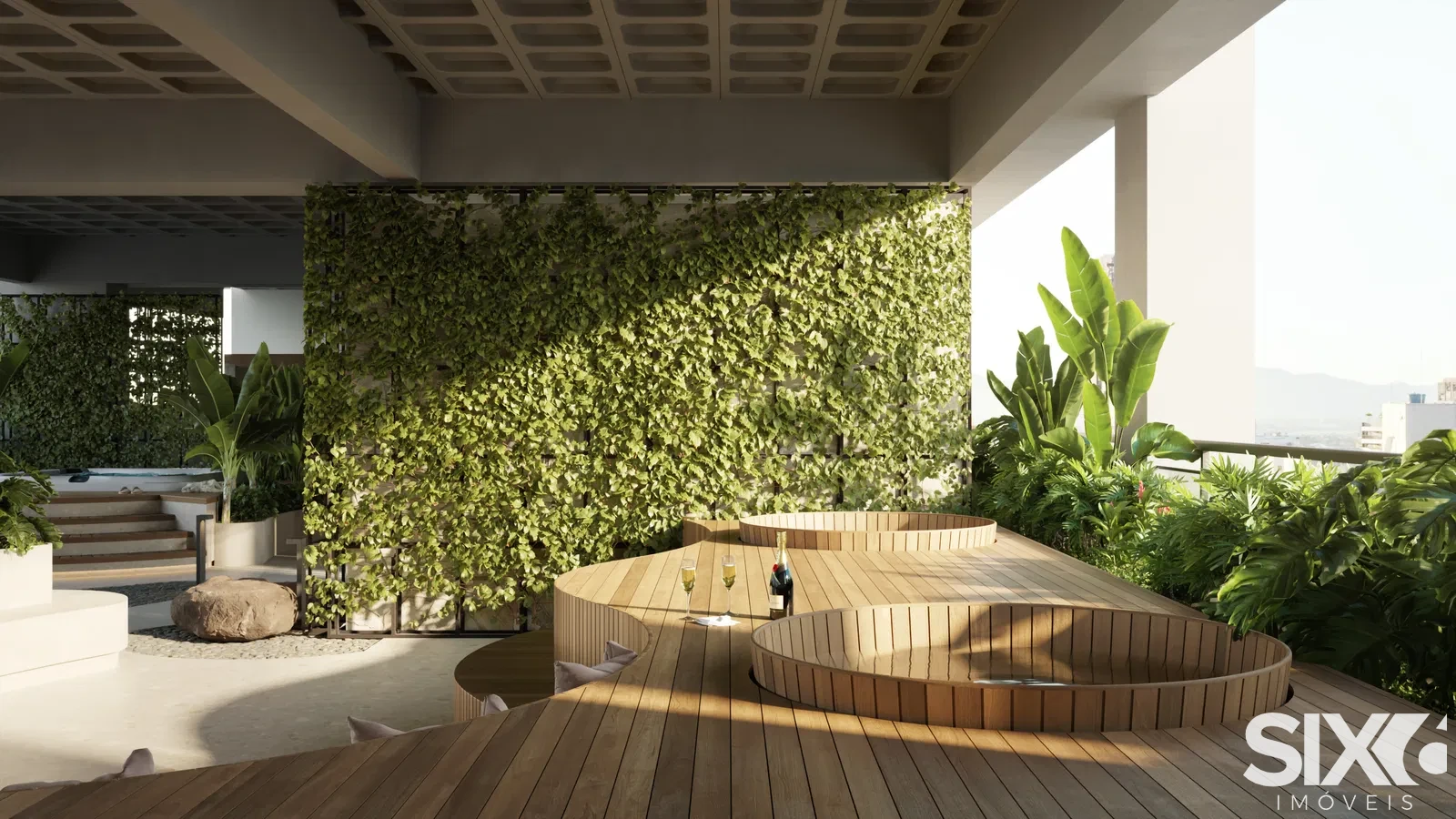 Piscina adulto e infantil, academia equipada, espaço gourmet e salão de festas, lounge para convivência, espaço de convivência ao ar livre, áreas de lazer cuidadosamente decoradas, segurança e portaria eletrônica.