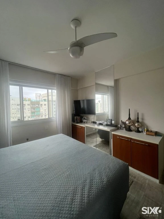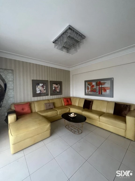 Apartamento mobiliado com vista para o mar, com 194m² de área privativa distribuídos em 04 quartos, sendo 02 suítes, 04 banheiros, lavabo, sala de estar, sala de jantar, cozinha, dependência de empregada, varanda e sacada. Possui também 01 vaga de garagem e ar condicionado.