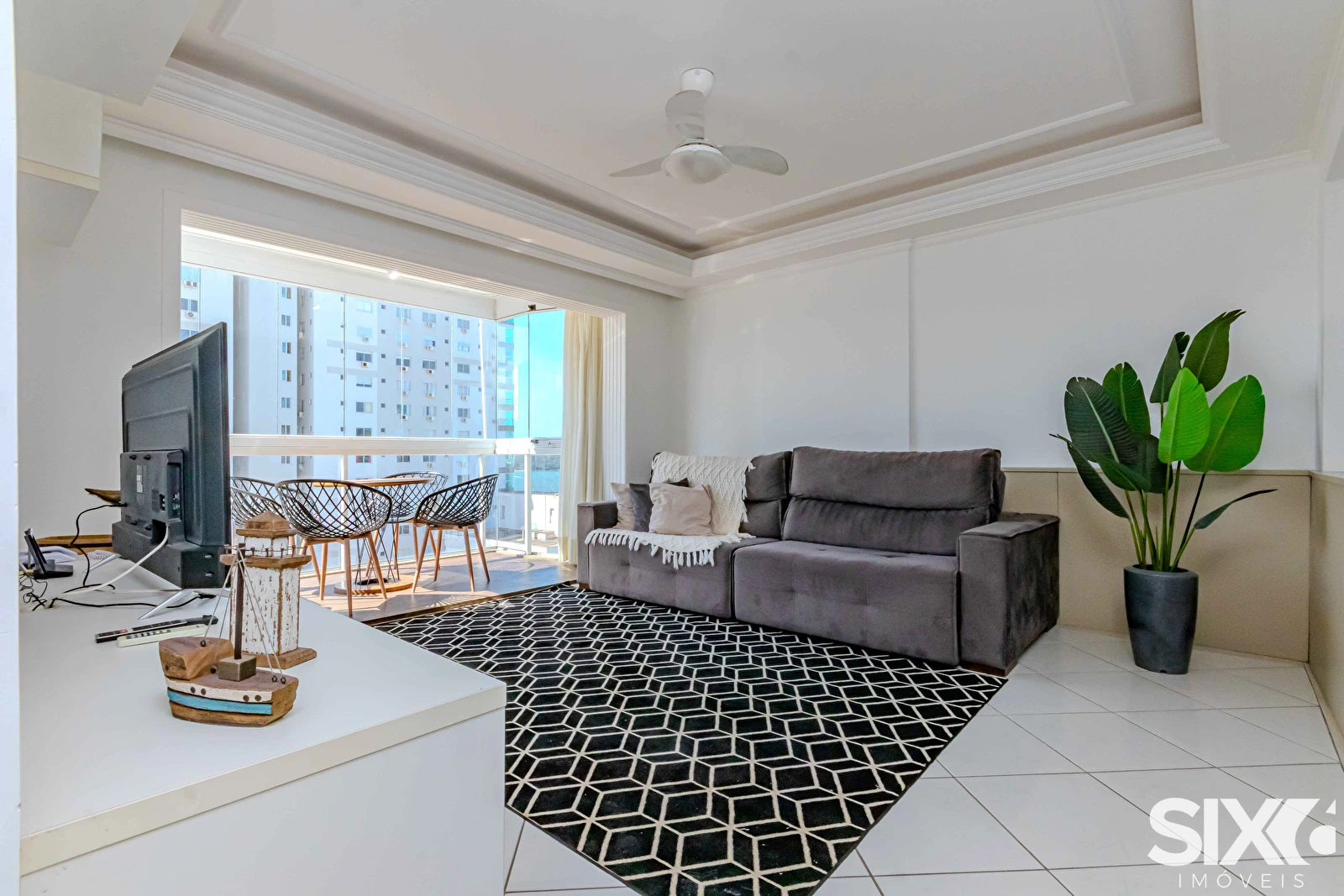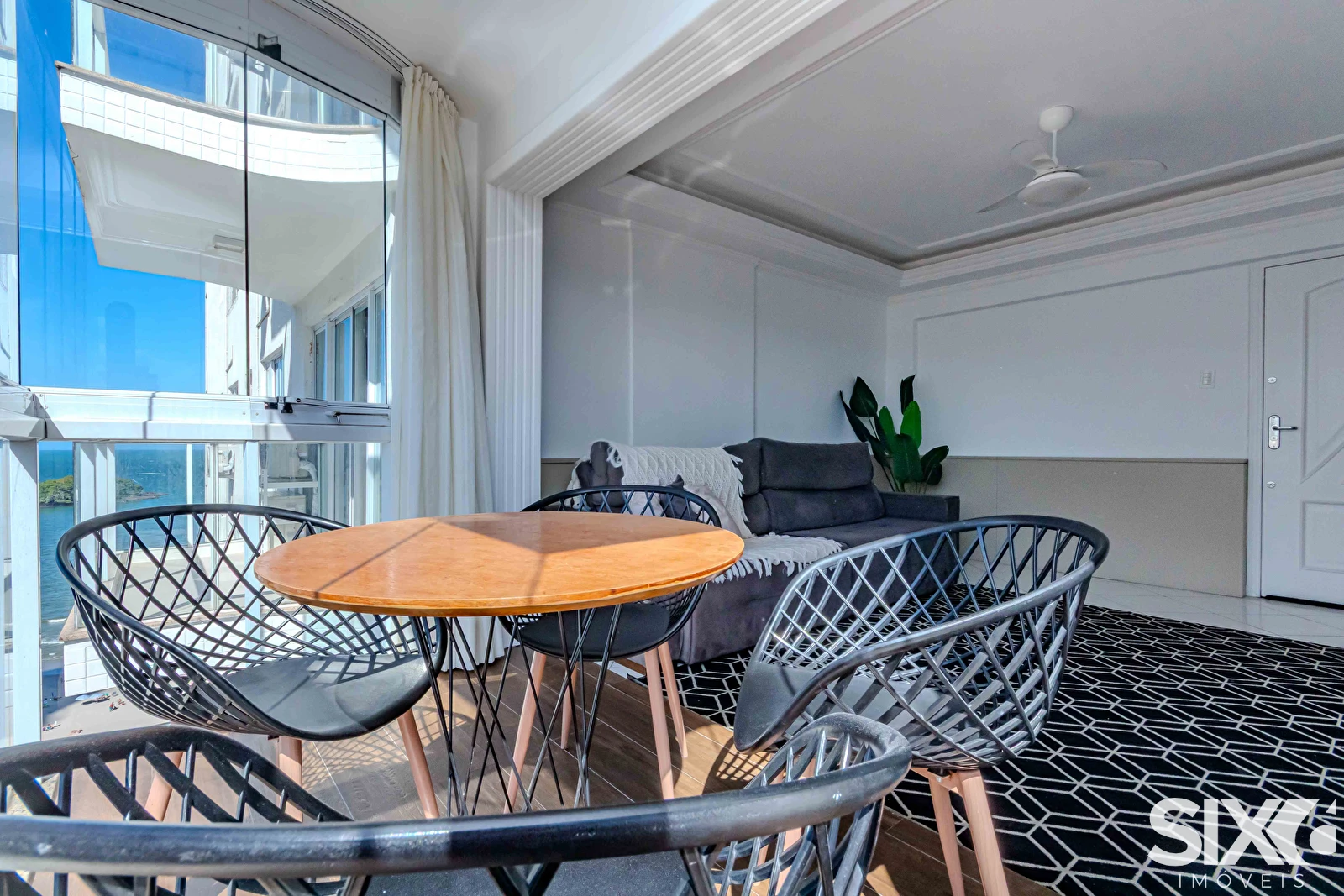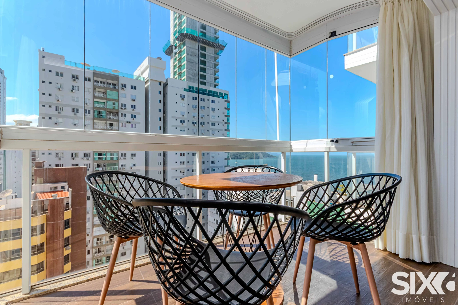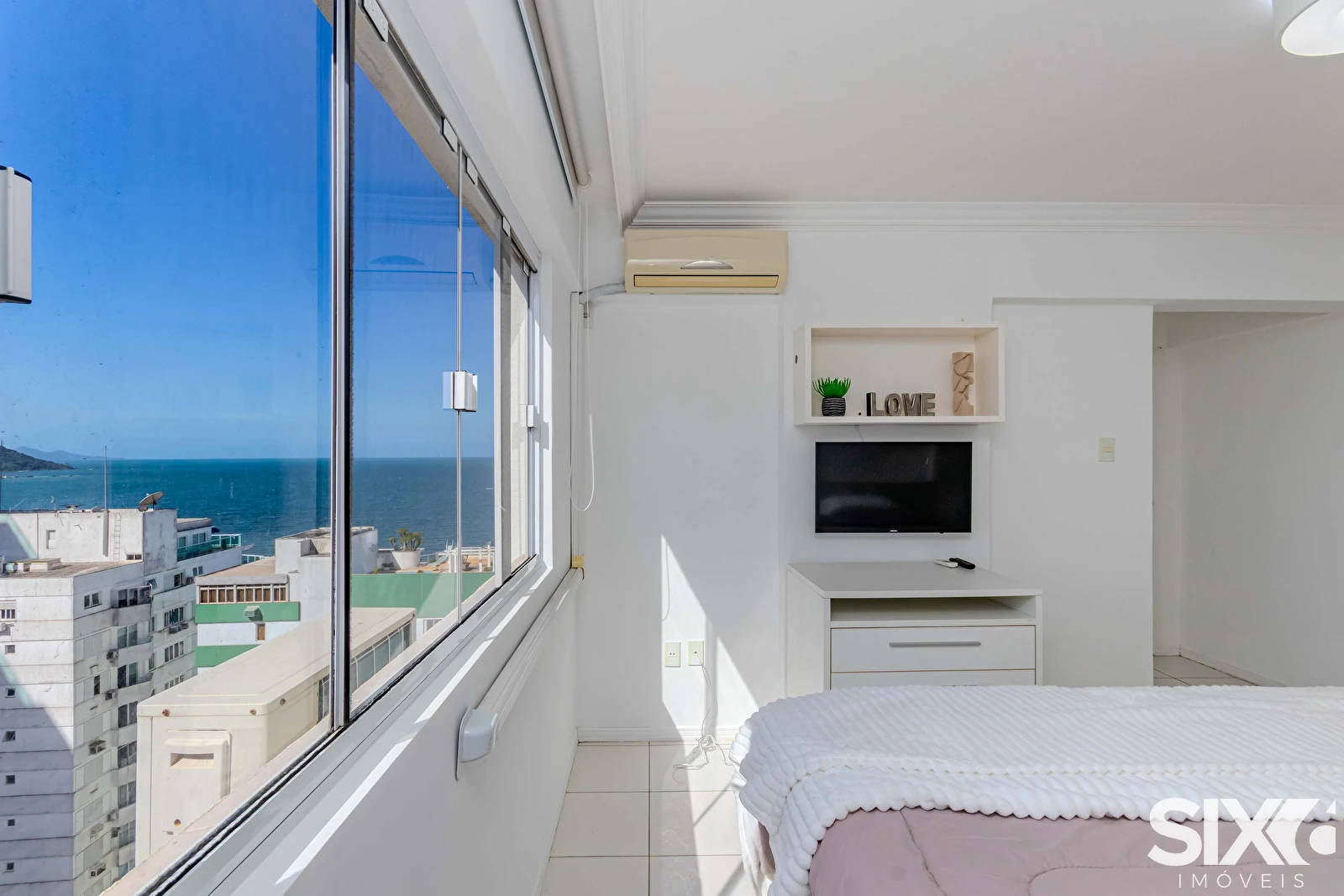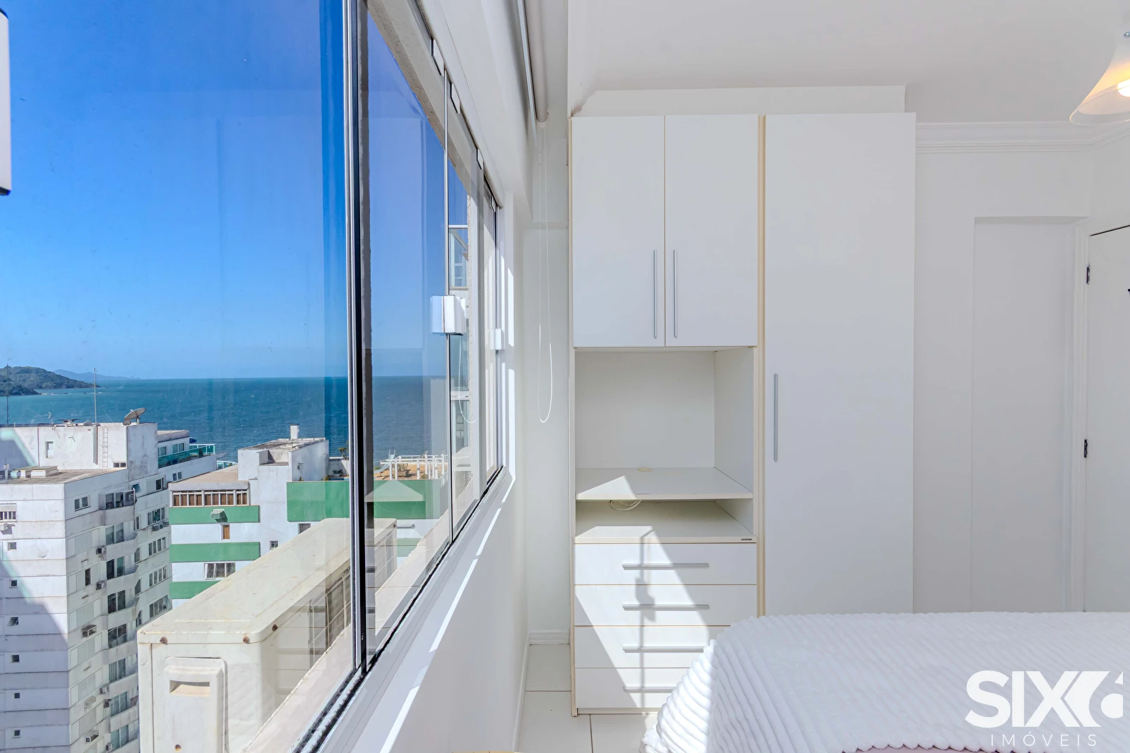 Apartamento mobiliado com vista para o mar, com 163m² de área privativa distribuídos em 03 dormitórios, sendo 02 suítes, lavabo, sala de estar, sala de jantar, cozinha. Possui também 01 vaga de garagem e ar condicionado.