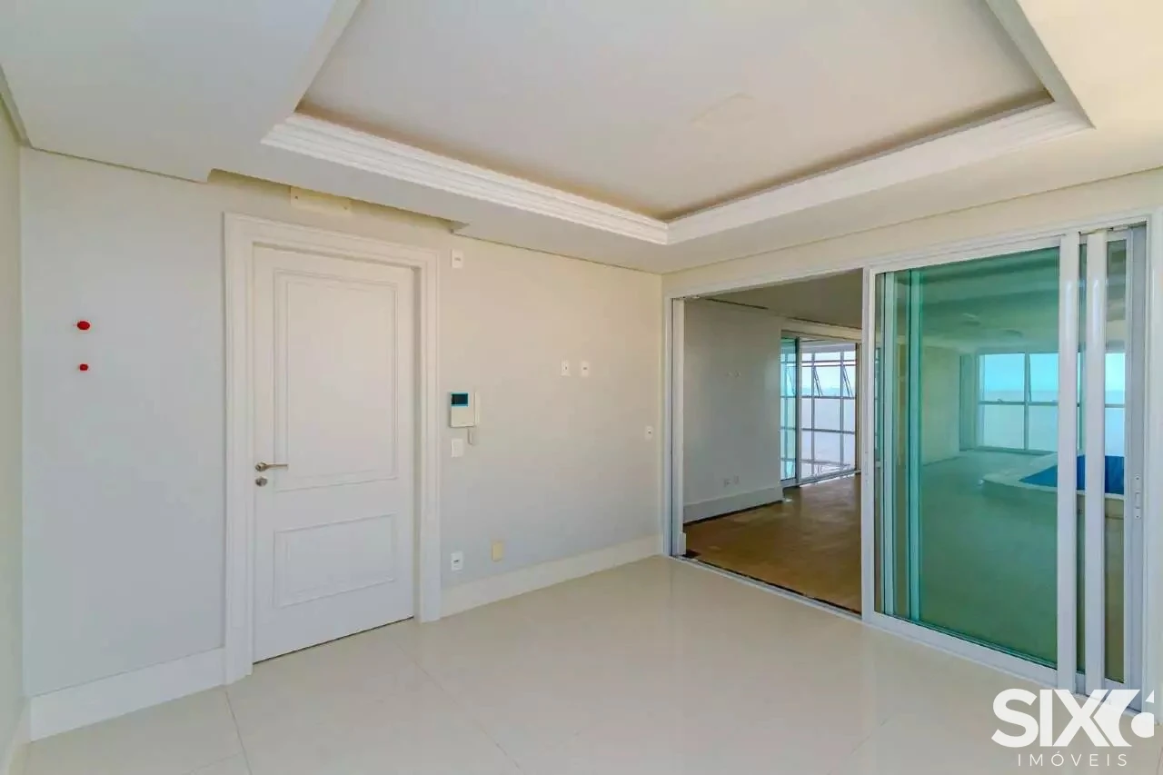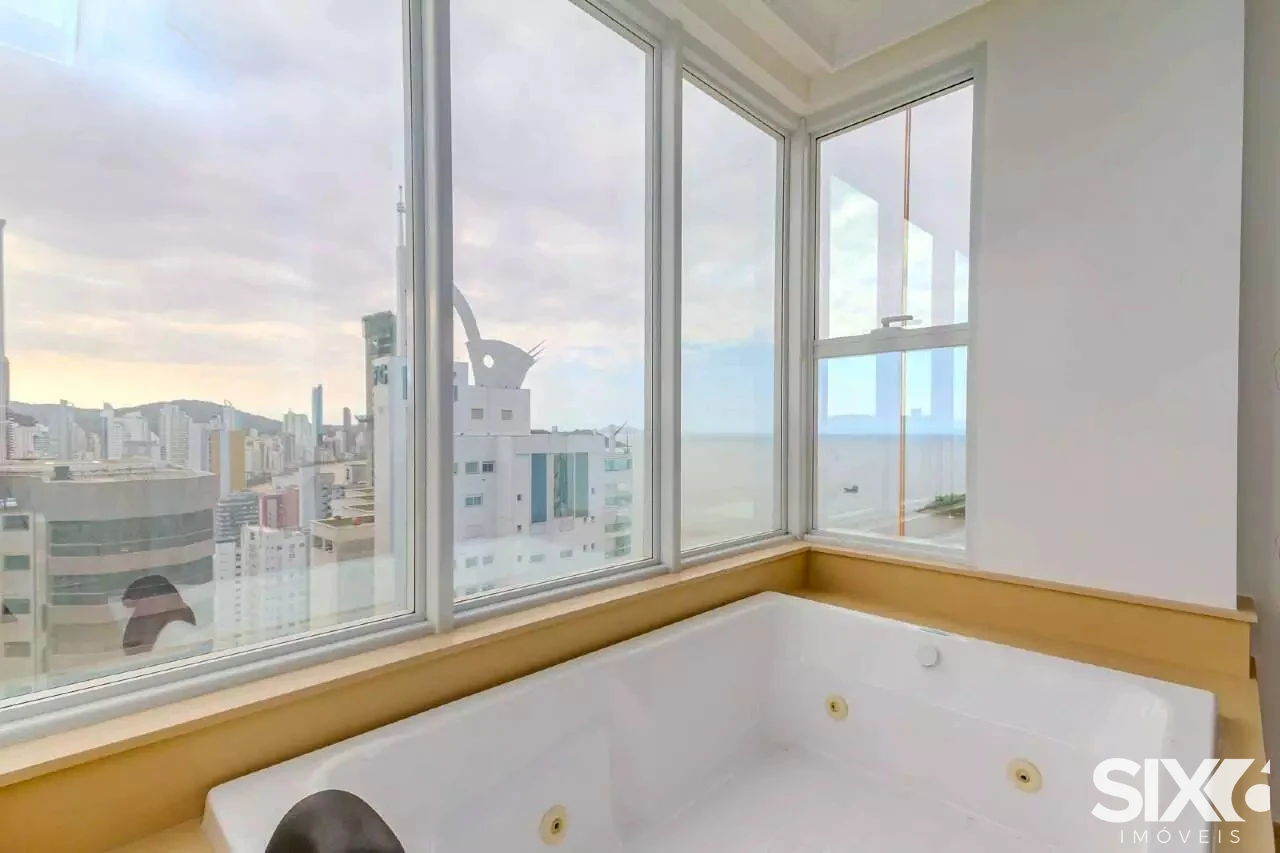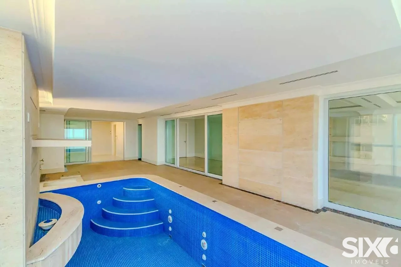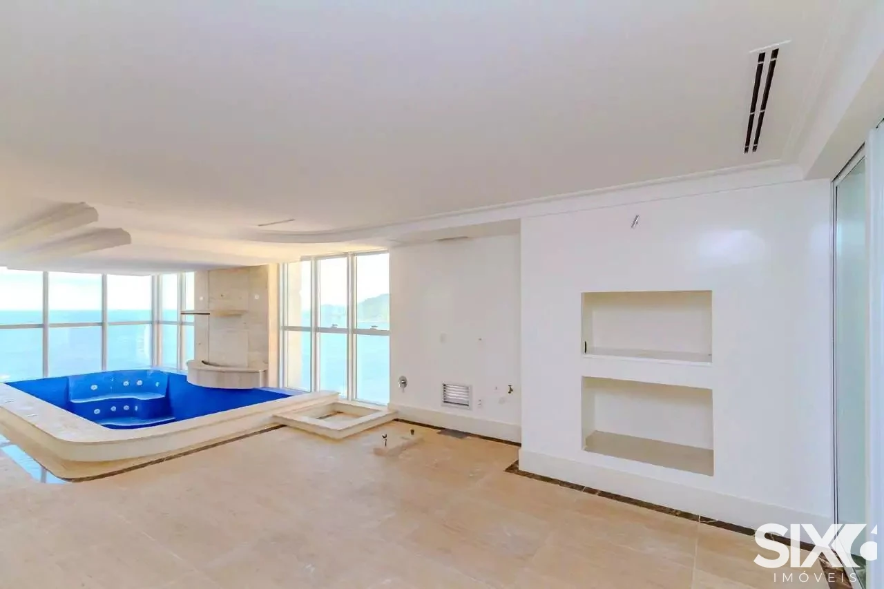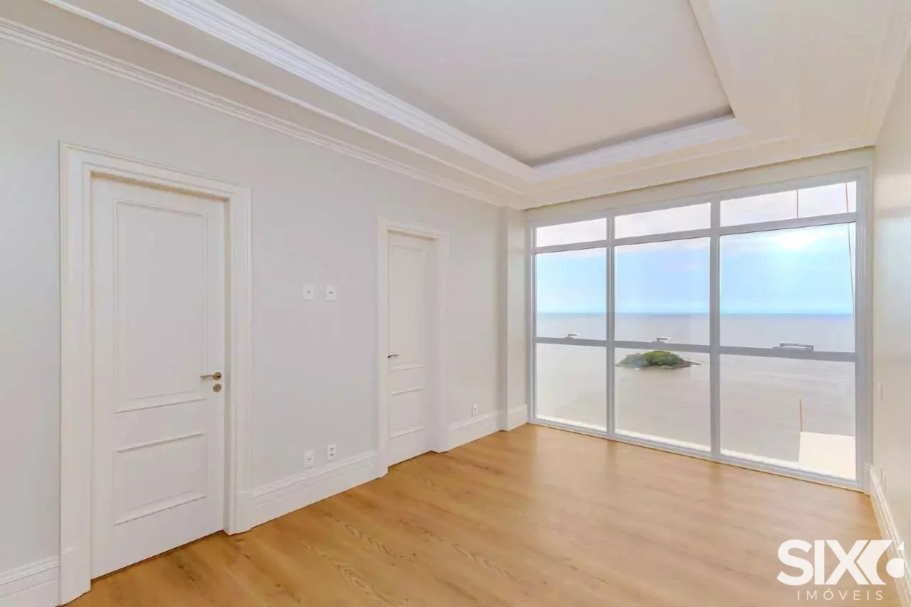 4 Suítes com hidromassagem (suíte principal com closet, sala de banho e vista para o mar), ampla sala de jantar e estar, com ponto de lareira a gás e vista panorâmica para o mar, dependência de empregada, 4 vagas de garagem, piscina panorâmica com vista para o mar espaço gourmet grill e ponto com churrasqueira à gás, 316 m² de área privativa.
