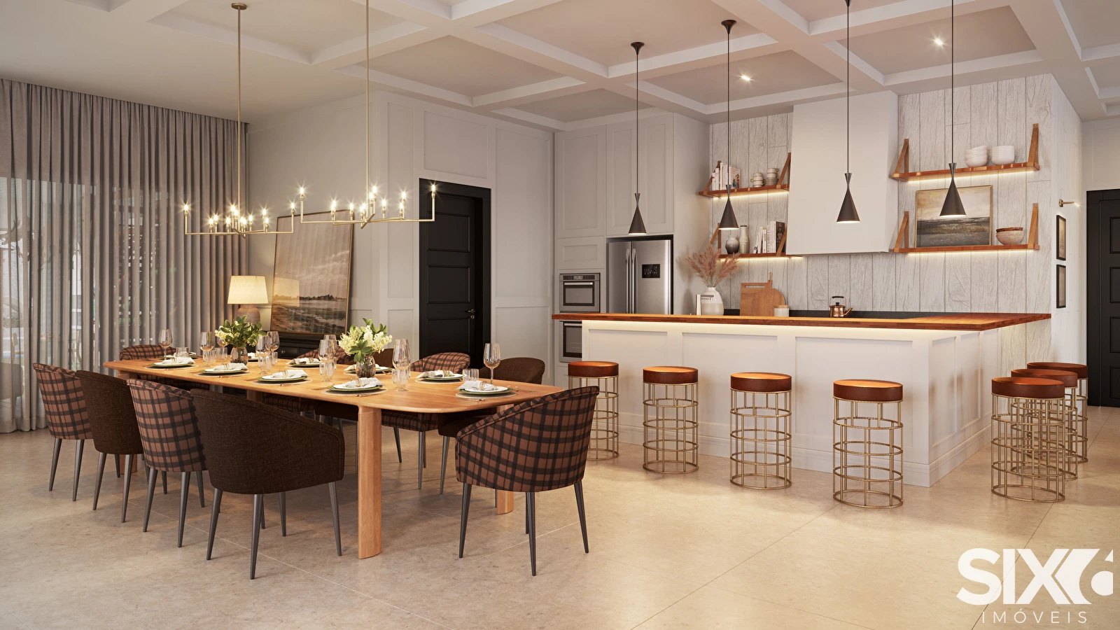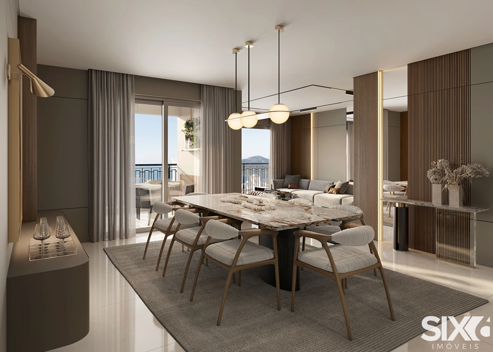03 Suítes, cozinha, living integrado, sacada com churrasqueira a carvão, lavabo, área de serviço, terraço fundo, terraço frente, 04 vagas de garagem.