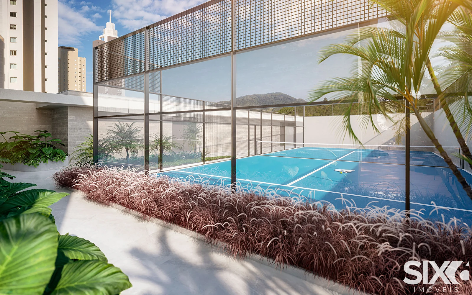 Poolheouse; pátio gourmet; pool bar; sun deck, beach station; the pool, kids pool, garden gourmet 1; garden gourmet 2; mini market; office;teens club; wine bar; wine club, quadra oficil de pádel; festa infantil; brinquedoteca; play;pomar; guesthouse; jardim de especiarias, lounge.
