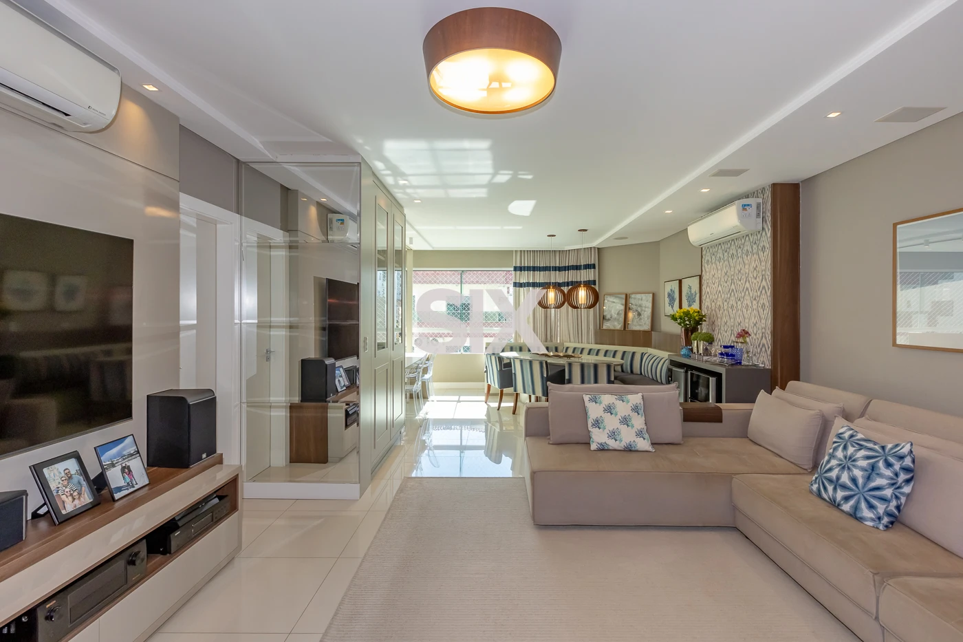 São 03 suítes, lavabo, amplo living com sala de jantar com canto alemão e cozinha, terraço amplo, finamente mobiliado e equipado, 03 vagas de garagem privativas, área privativa 213,67 m², rua reta ao mar.