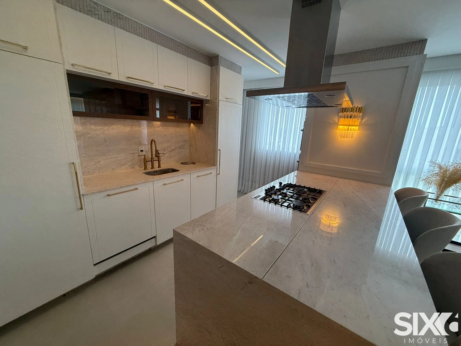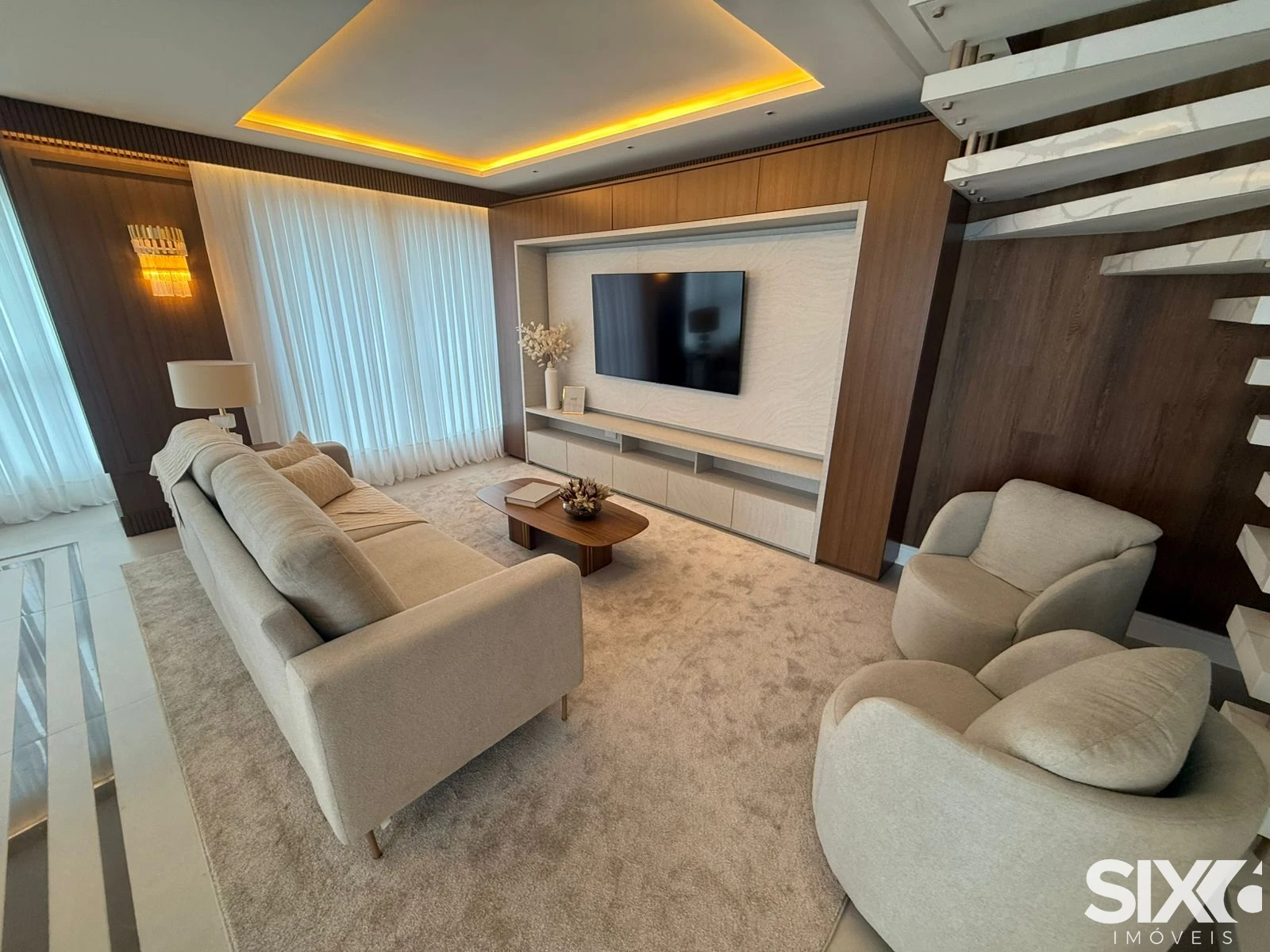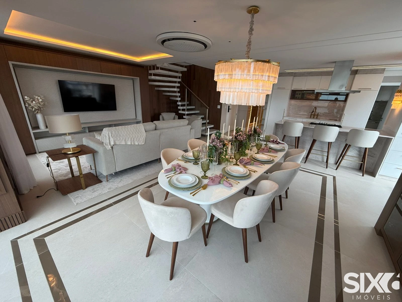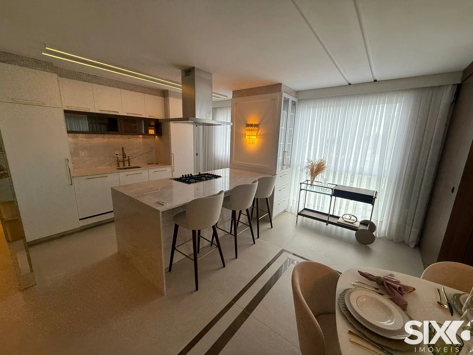 Características do Apartamento: 4 Suítes, Living p/ 2 ambientes, Sacada integrada com churrasqueira a carvão, 163,39m² Área interna privativa, Cozinha, Lavabo, Piso em porcelanato nas áreas sociais,