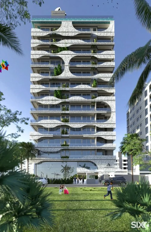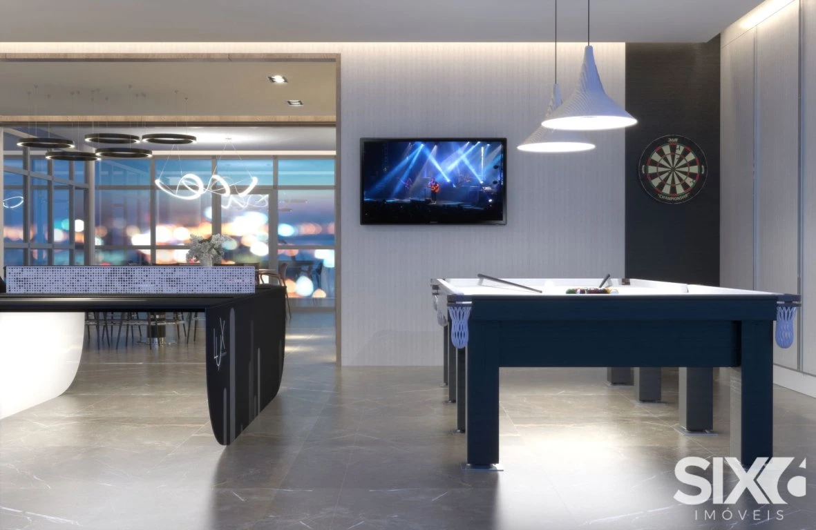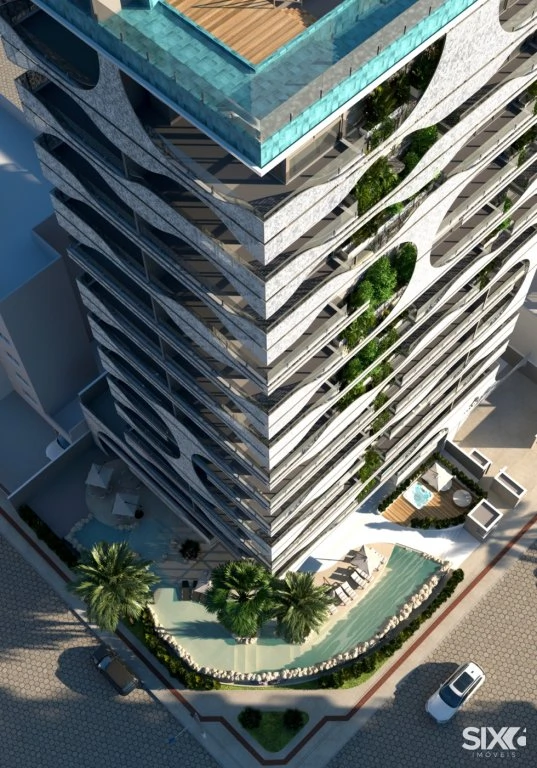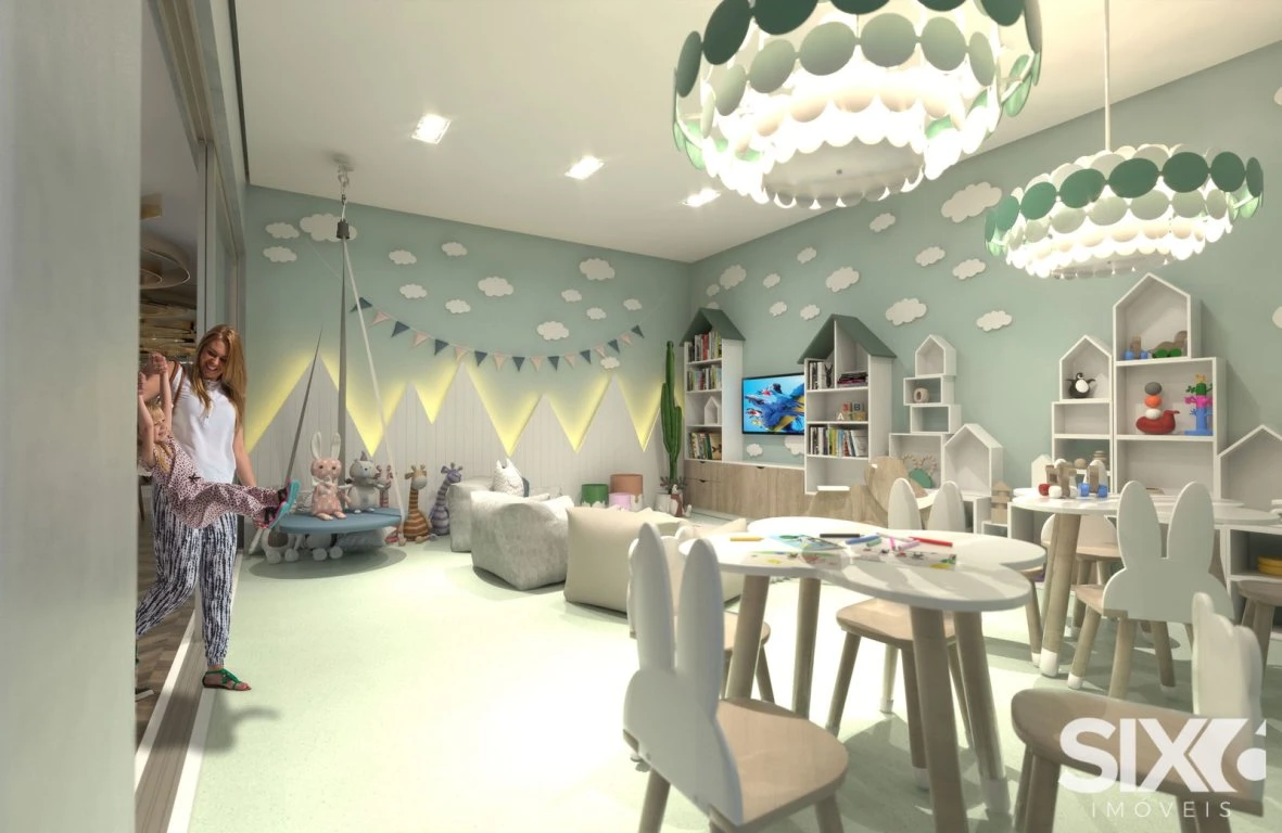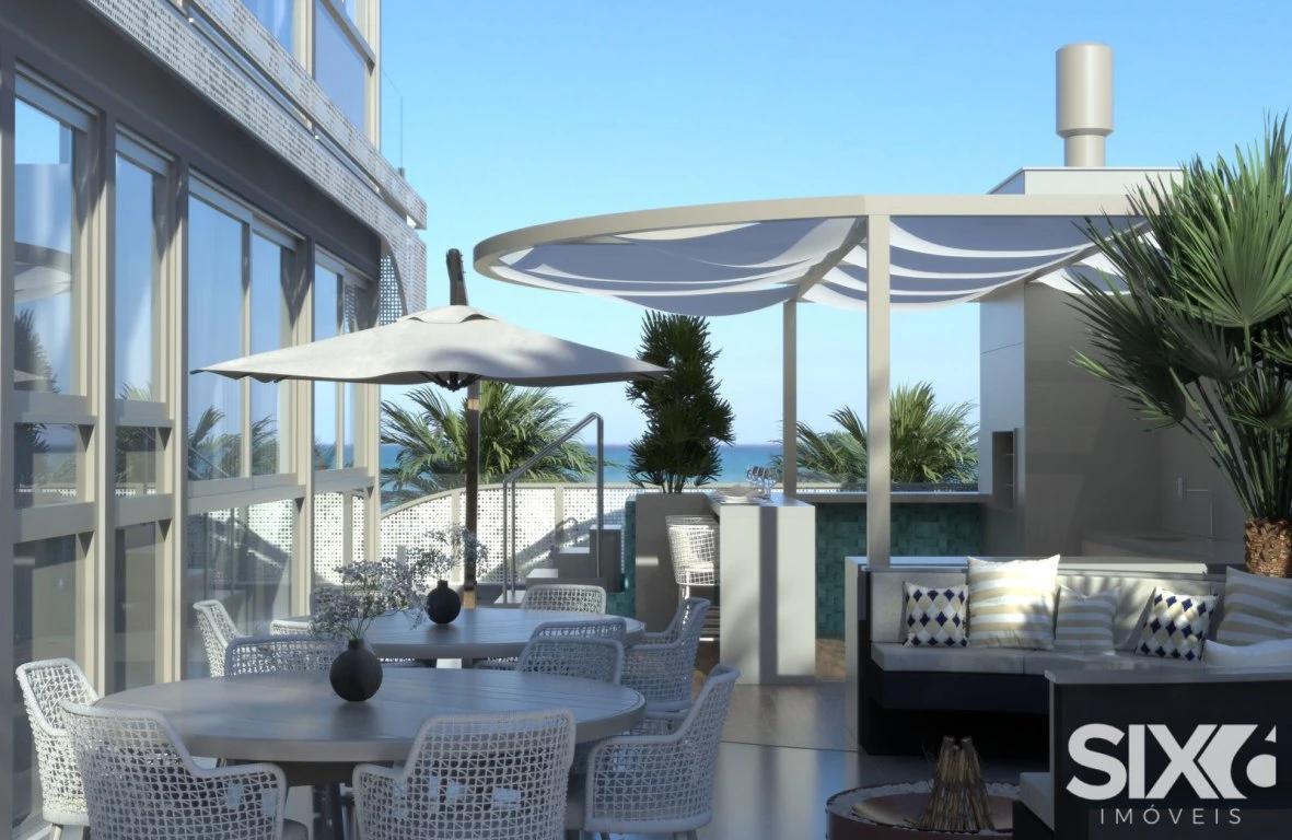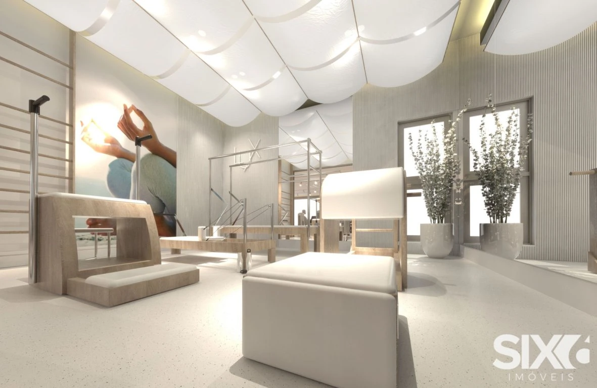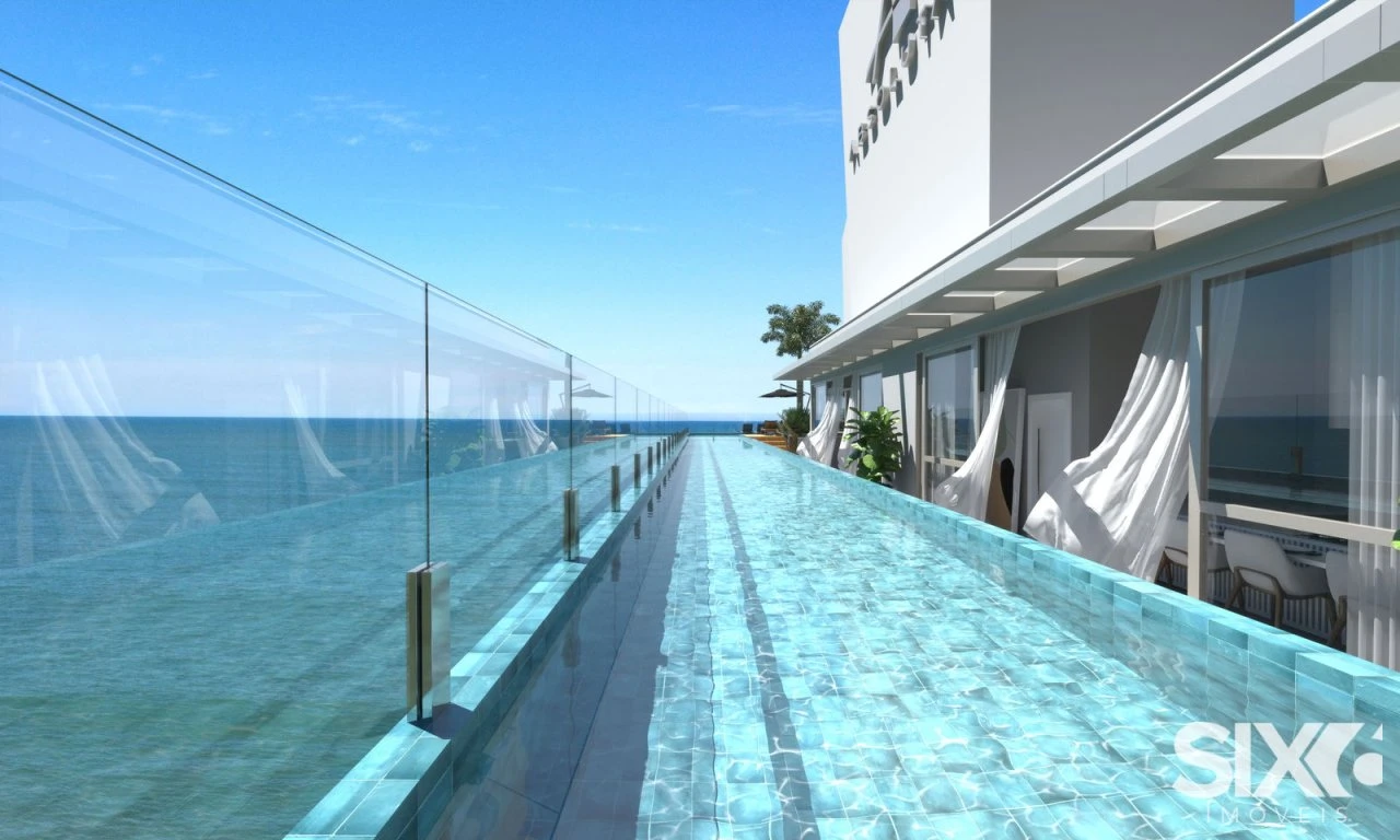 Academia, alarme, bar, bicicletário, brinquedoteca, circuito Tv, elevador, entrada para banhistas e box de praia, espaço no gourmet, estar social, stúdio de pilates, guarita de segurança, hall de entrada decorado e mobiliado, hidromassagem, hidromassagem na piscina, interfone, internet, lounge, medidores de água, luz e gás individuais, piscina adulta e infantil, piscina térmica, playground, pub, reaproveitamento de água, sala de jogos, salão de festas, sauna, spa e 02 Apartamentos por andar.