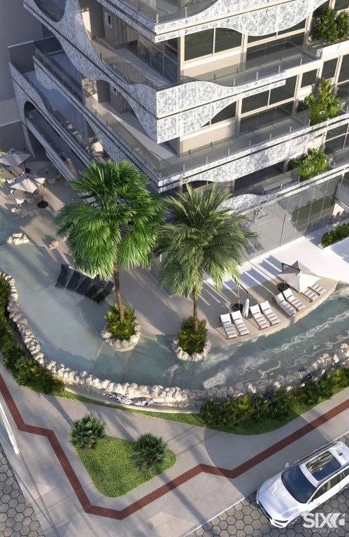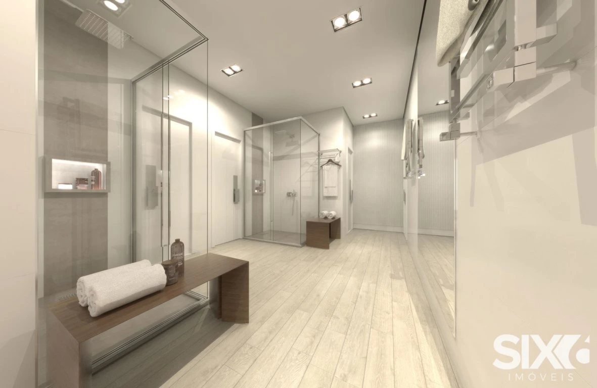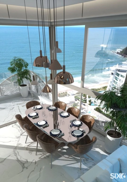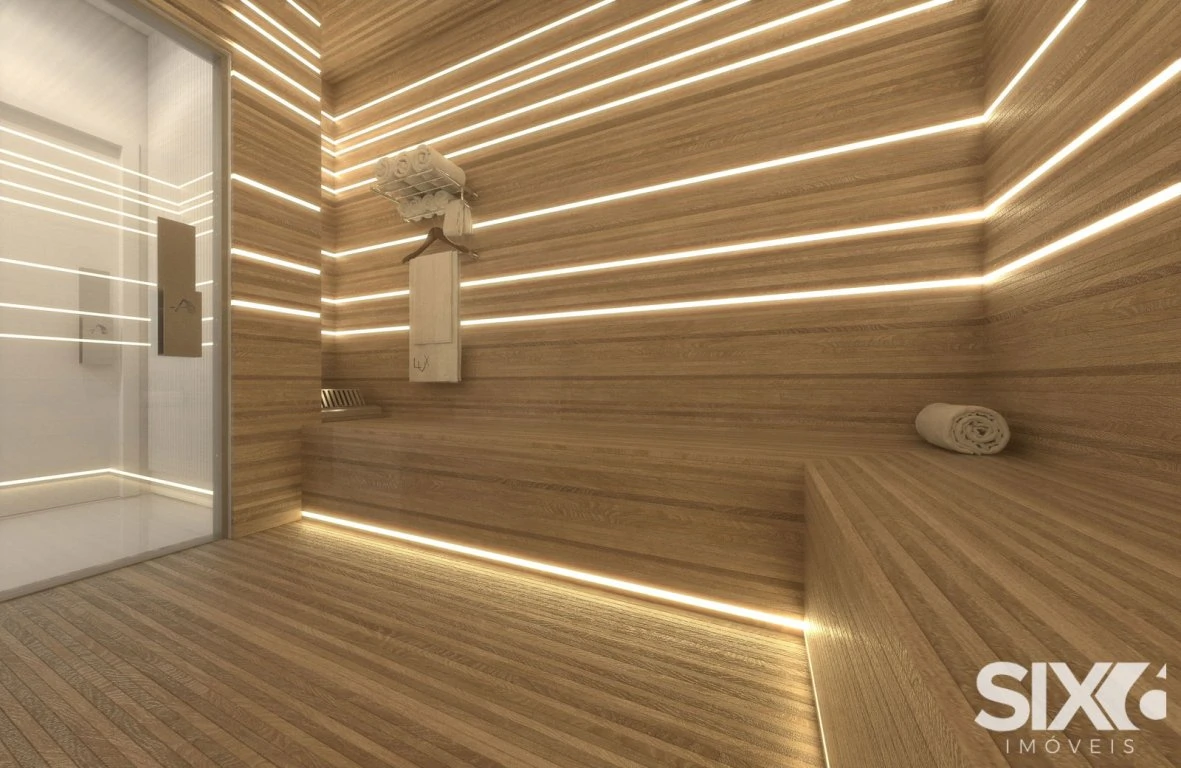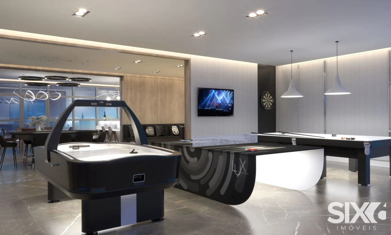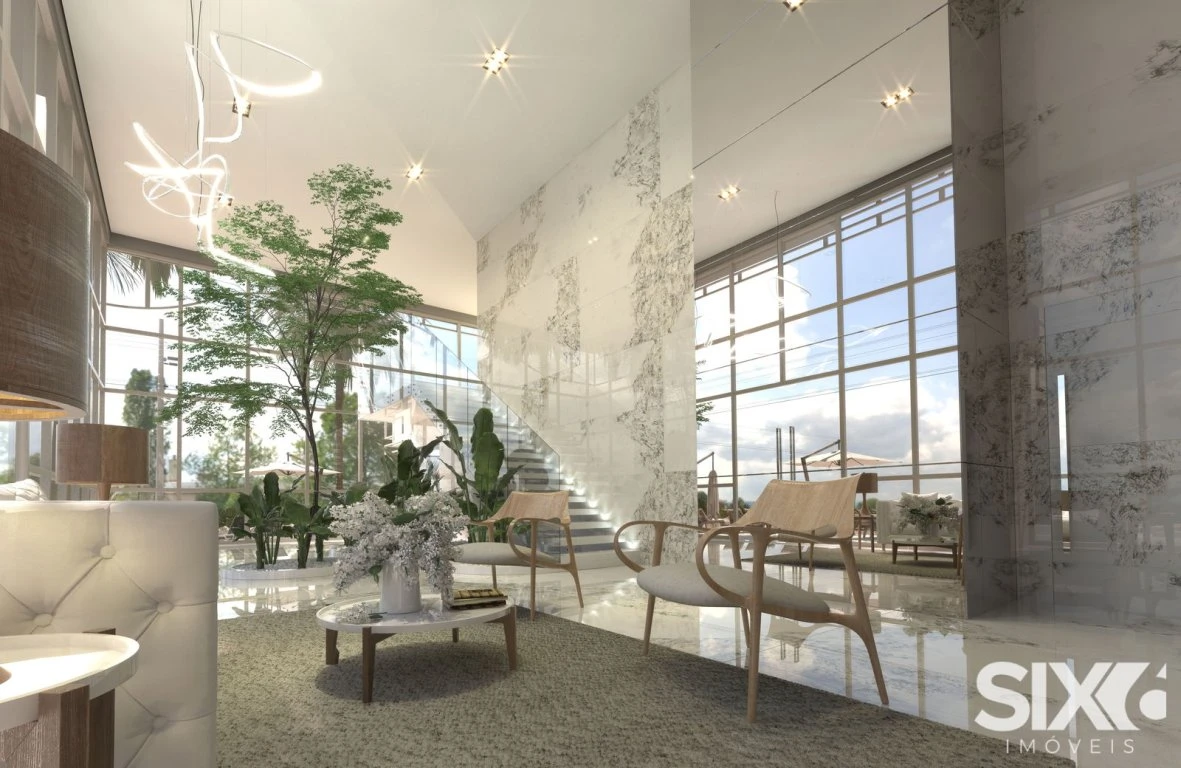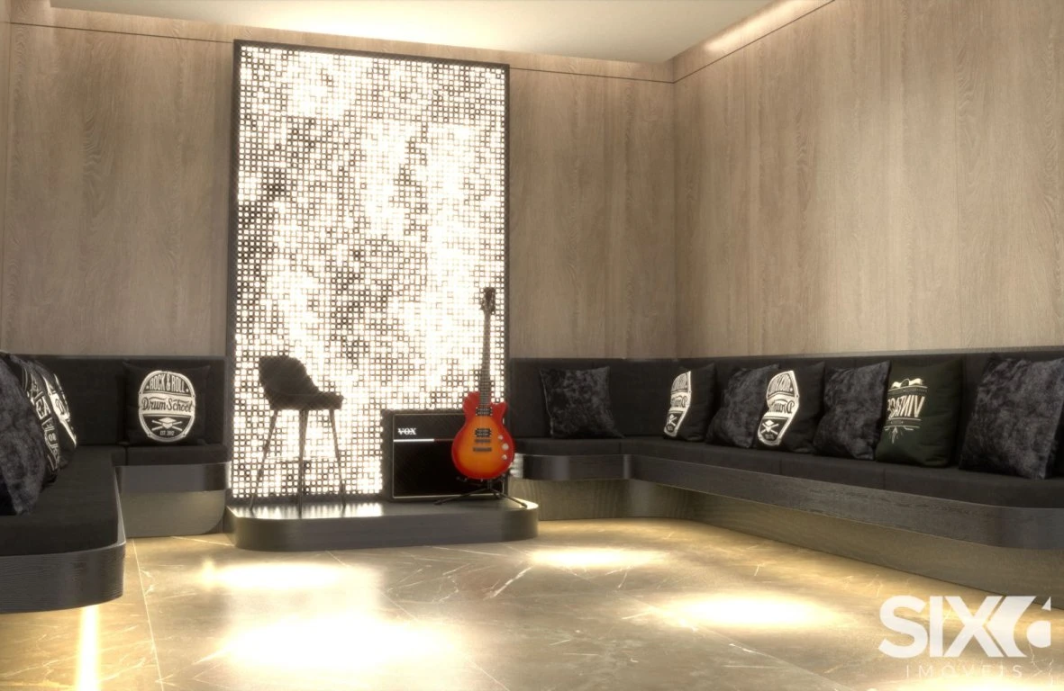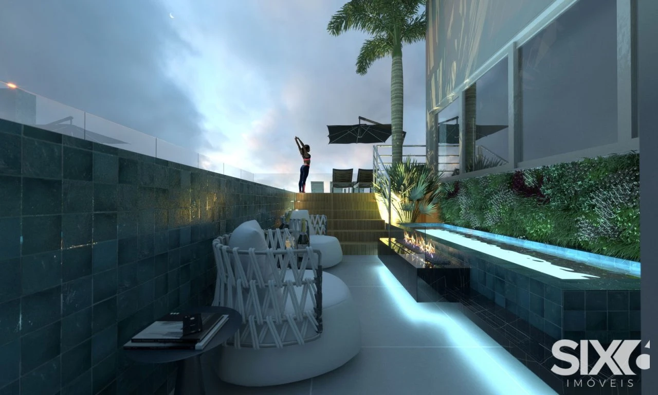 Academia, alarme, bar, bicicletário, brinquedoteca, circuito Tv, elevador, entrada para banhistas e box de praia, espaço no gourmet, estar social, stúdio de pilates, guarita de segurança, hall de entrada decorado e mobiliado, hidromassagem, hidromassagem na piscina, interfone, internet, lounge, medidores de água, luz e gás individuais, piscina adulta e infantil, piscina térmica, playground, pub, reaproveitamento de água, sala de jogos, salão de festas, sauna, spa e 02 Apartamentos por andar.
