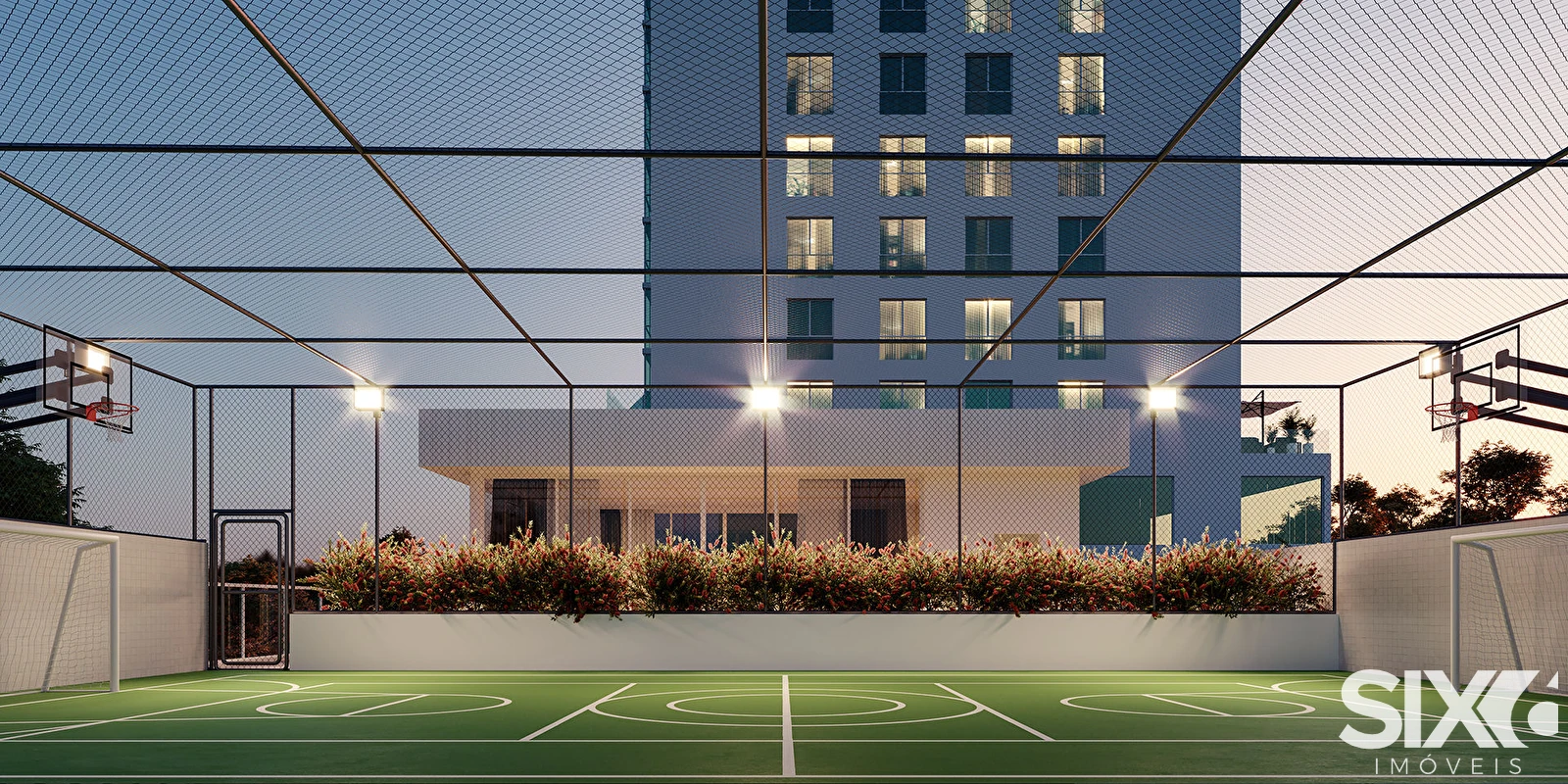Piscina adulto, piscina infantil, espelho d'agua, sala de jogos, salão de festas, playground, brinquedoteca, lounge, espaço gourmet, academia, sauna úmida, sala de massagem, spa, quadra poliesportiva