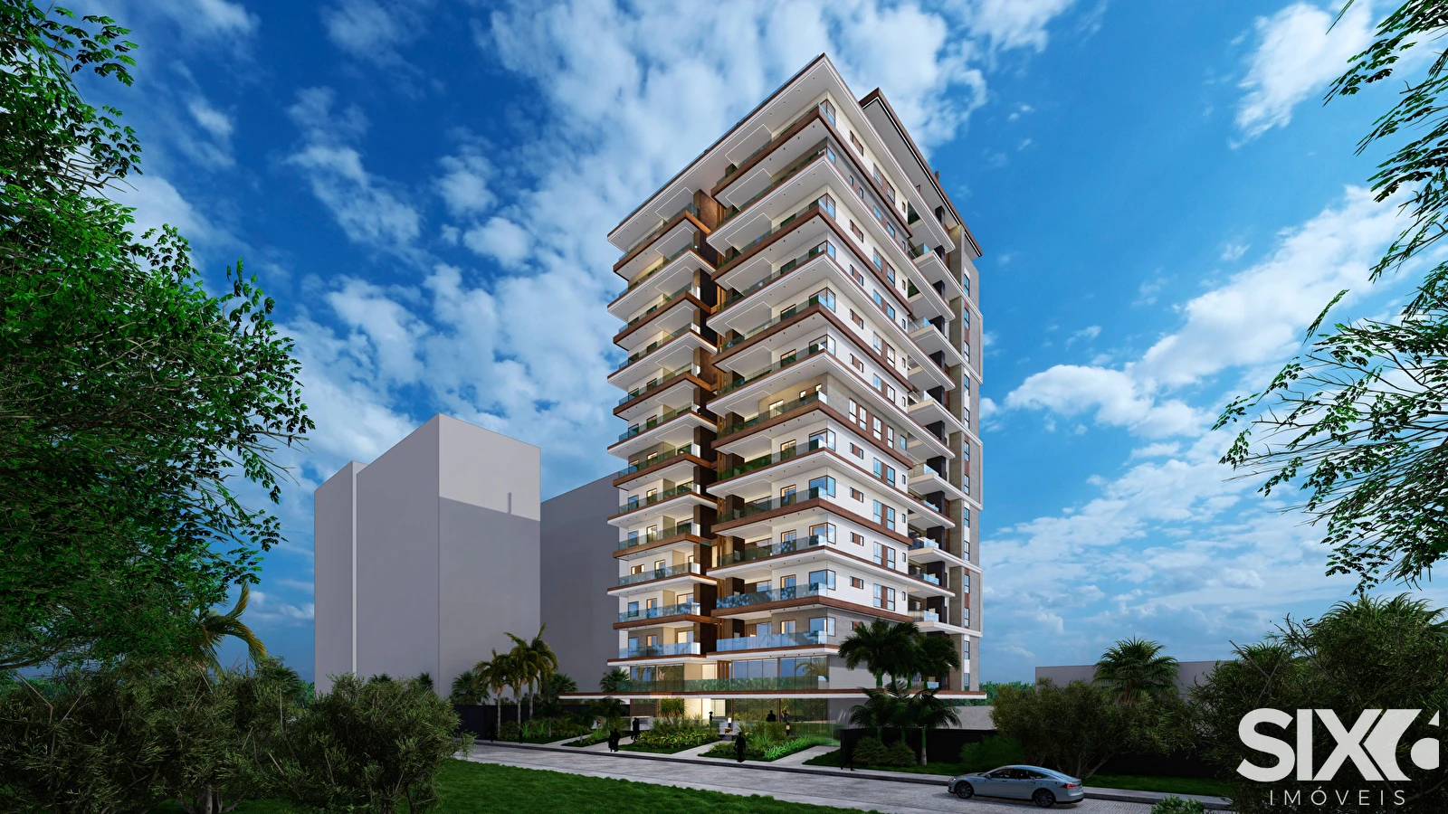 São 183m² de área privativa com living integrado, varanda aberta com churrasqueira a carvão, lavabo social, estendal na área de serviço, 2 suítes + 2 demi suítes e 3 vagas de garagem.