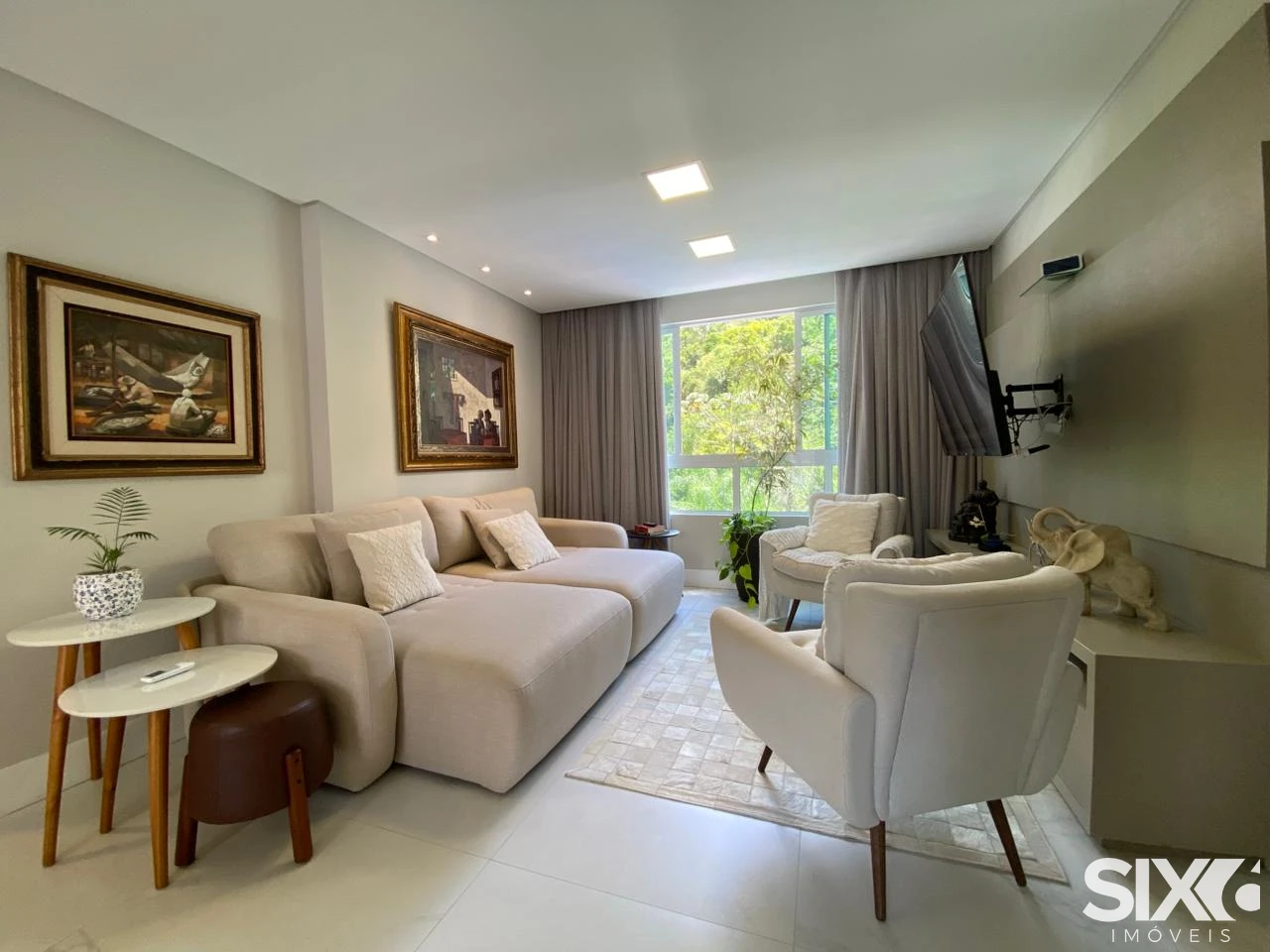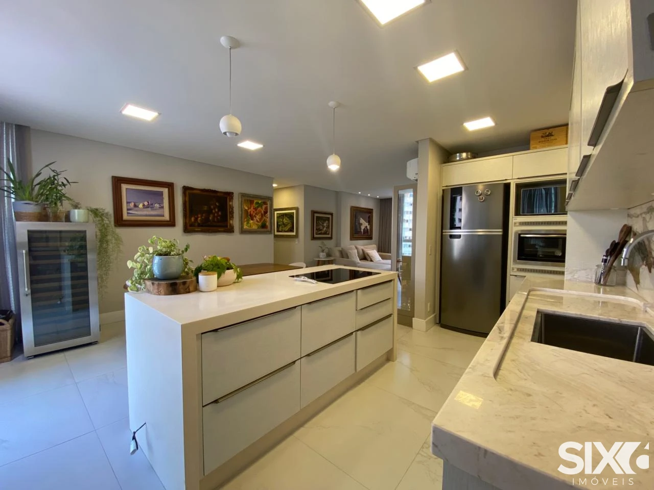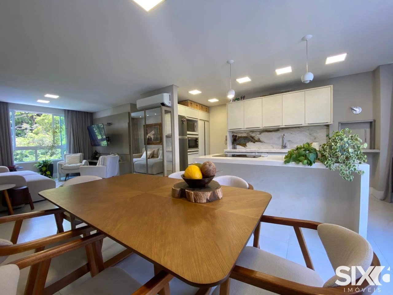 Apartamento mobiliado com living integrado com a sala de jantar, lavabo, cozinha, área de serviço, 2 suítes e 2 demi suítes, 3 vagas de garagem, acabamento em gesso, churrasqueira, porcelanato, hidrômetro individual, circuito tv, banheiro social, vista panorâmica, gás individual, aquecimento á gás.