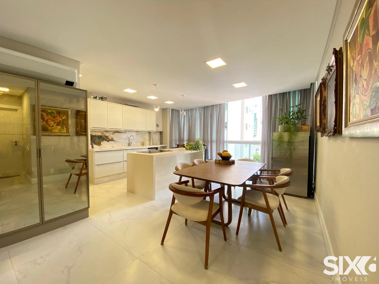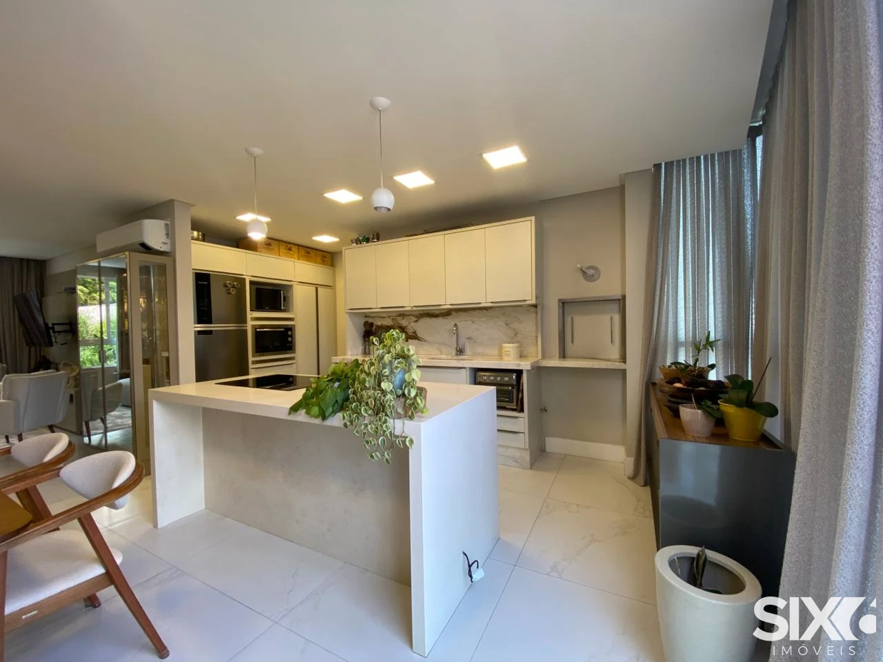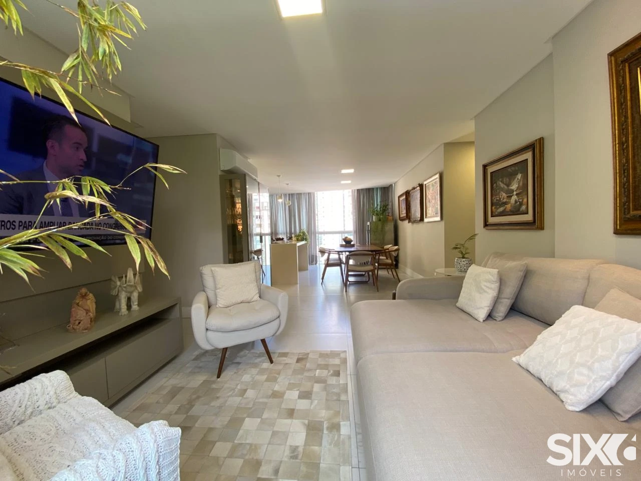 Apartamento mobiliado com living integrado com a sala de jantar, lavabo, cozinha, área de serviço, 2 suítes e 2 demi suítes, 3 vagas de garagem, acabamento em gesso, churrasqueira, porcelanato, hidrômetro individual, circuito tv, banheiro social, vista panorâmica, gás individual, aquecimento á gás.