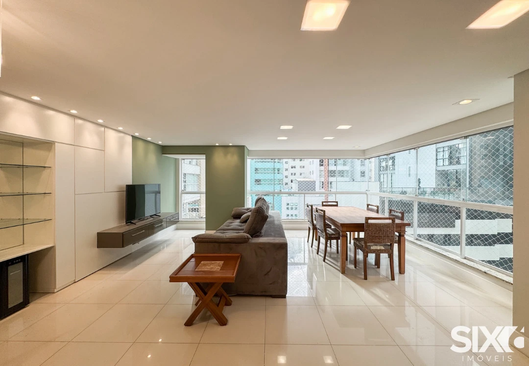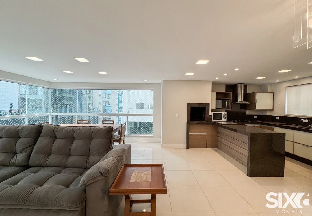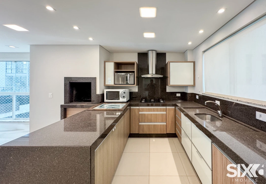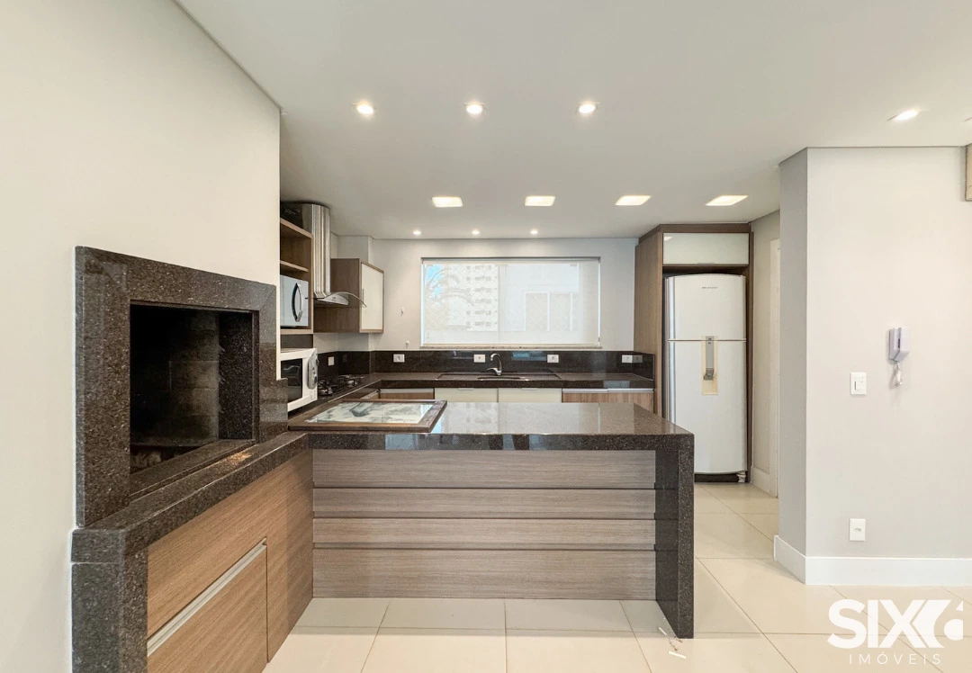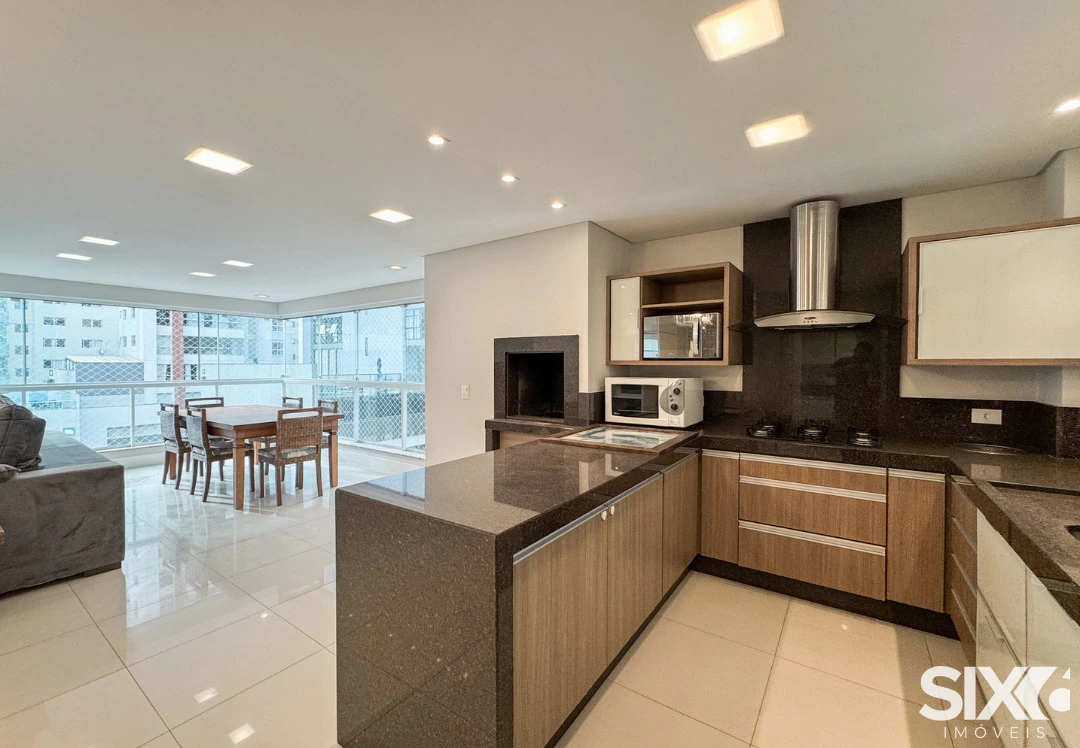 03 Suítes, mobiliado e decorado, cozinha e sala integrada, espaço gourmet com churrasqueira a carvão, lavabo, área de serviço, 140m² área privativa, 03 vagas de garagem.