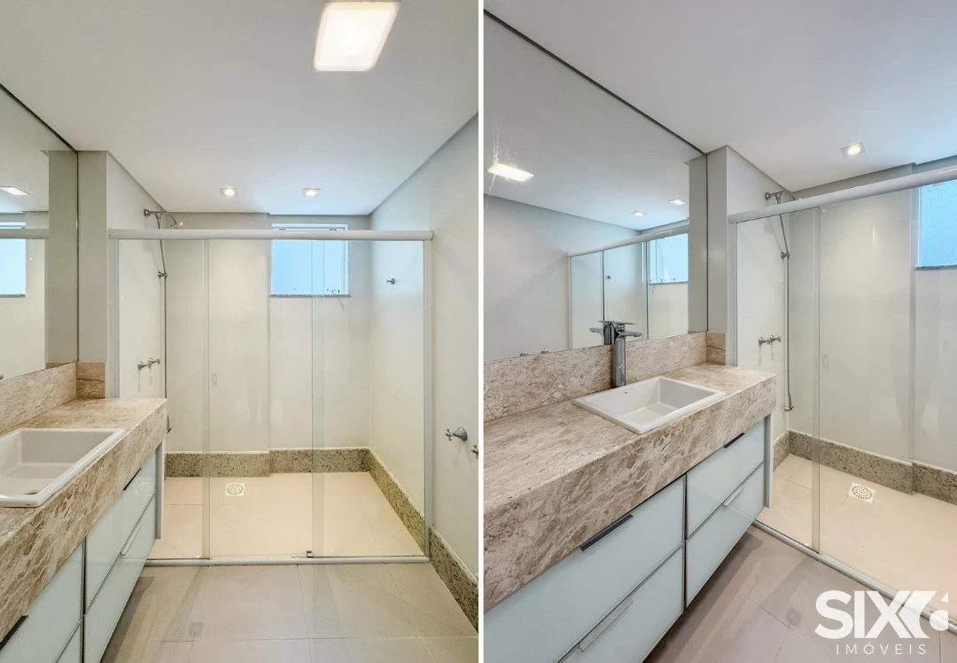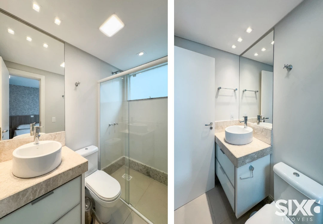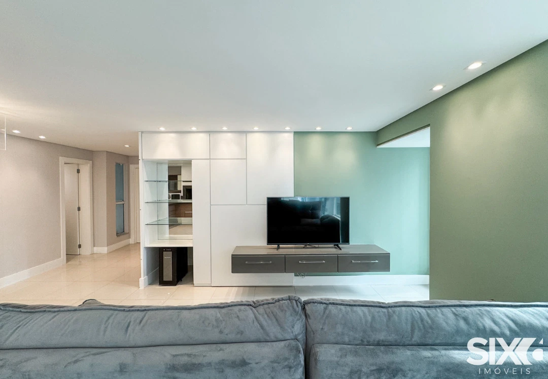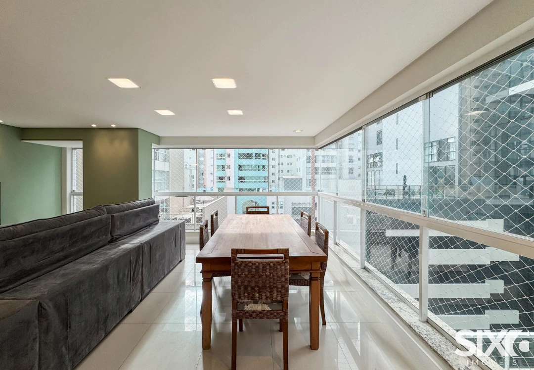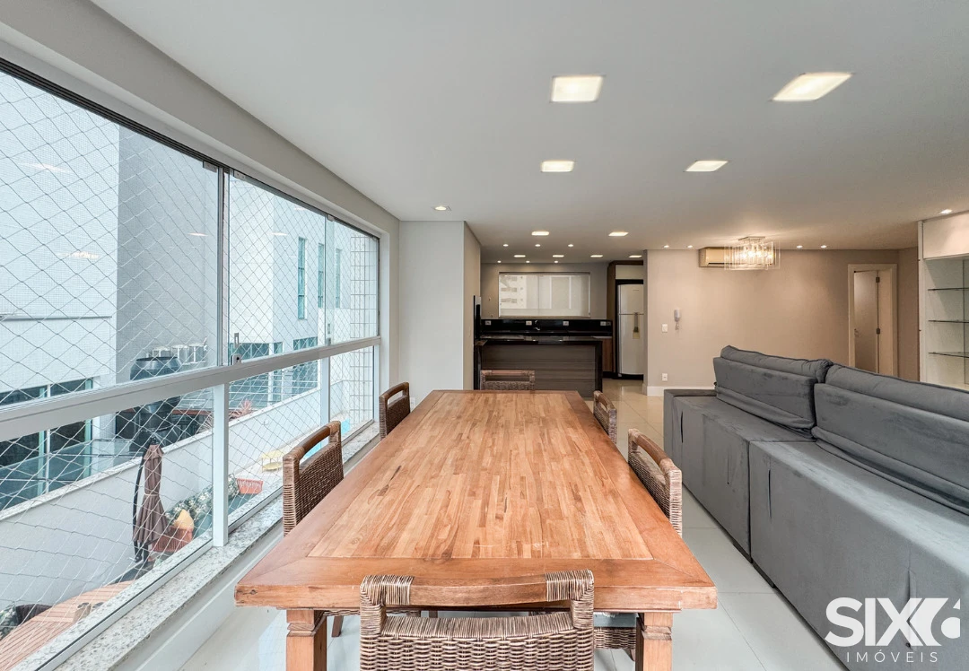 03 Suítes, mobiliado e decorado, cozinha e sala integrada, espaço gourmet com churrasqueira a carvão, lavabo, área de serviço, 140m² área privativa, 03 vagas de garagem.