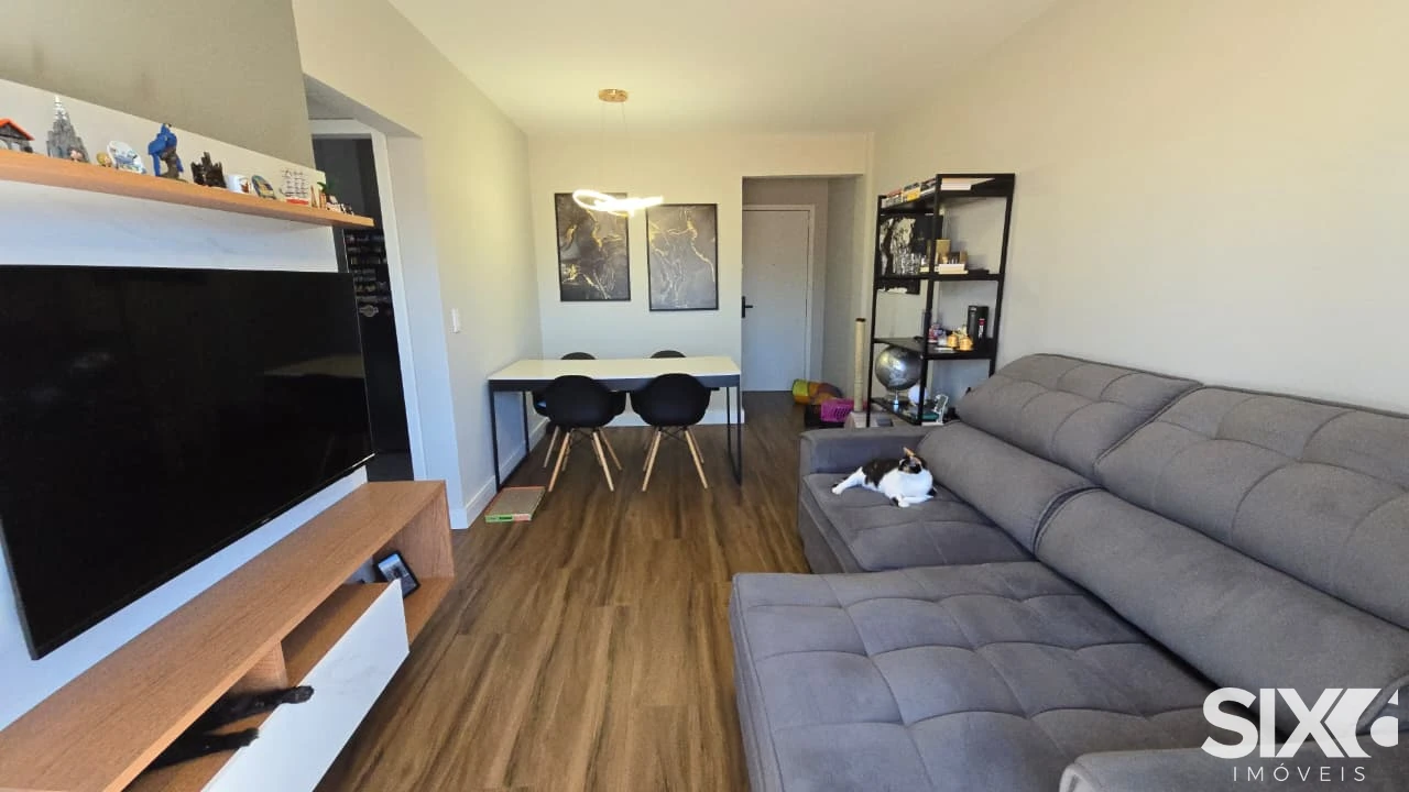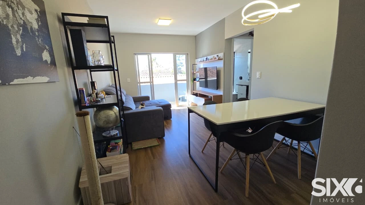São 66 m² totais, 1 dormitório (possibilidade de transformar em 2), 1 banheiro, sala de jantar e TV integradas, varanda com vista da cidade, área de serviço separada da cozinha, 1 vaga de garagem, aceita pets. Mobília moderna (sofá-cama casal incluso), ar-condicionado inverter (quente e frio), lustre com 3 opções de iluminação (branco, amarela ou mista), eletrodomésticos de última geração, lavadora e secadora de roupas, geladeira smart duas portas, fechadura eletrônica (biometria, senha e tag).