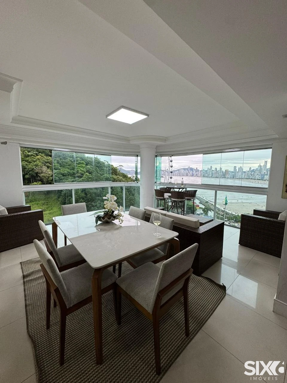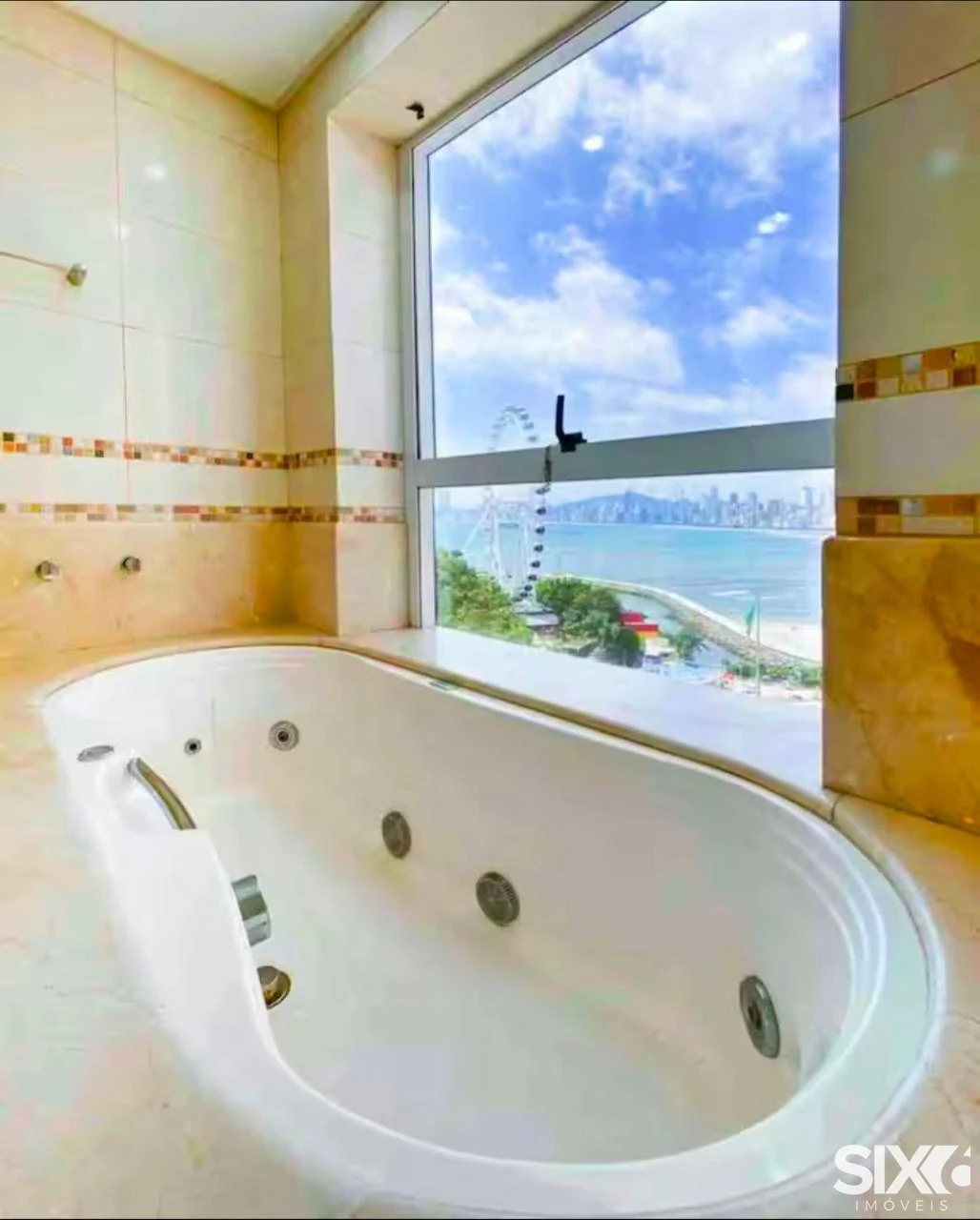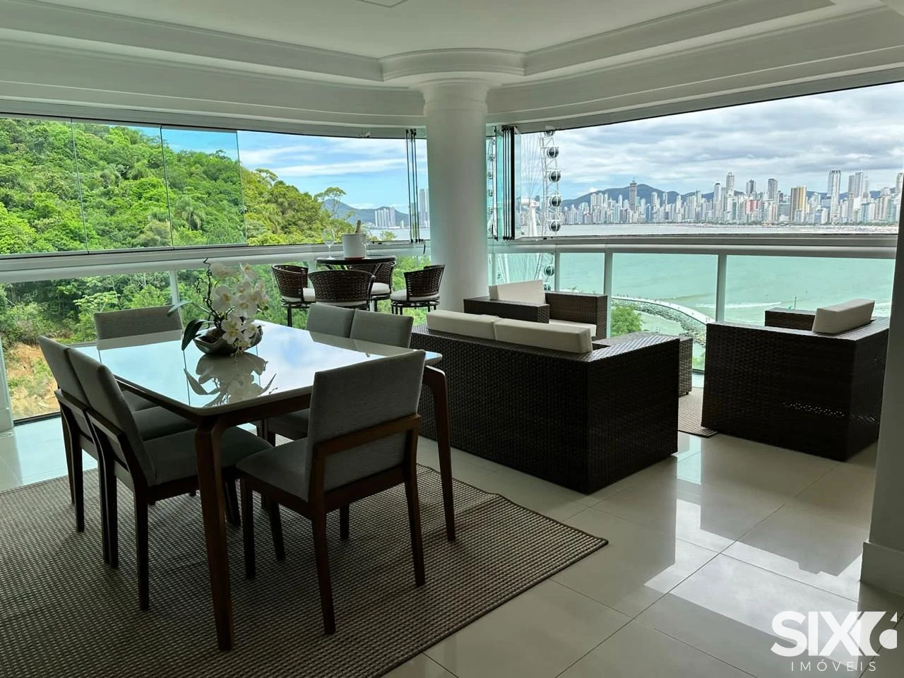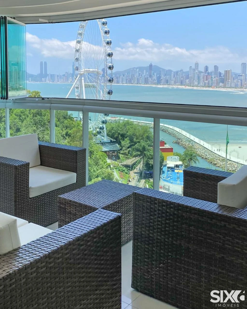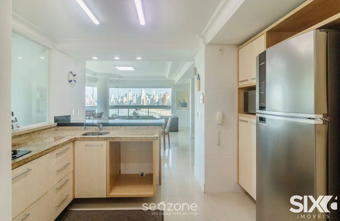 Diferenciais do apartamento: 3 Suítes (1 com banheira), Amplo Living com dois Ambientes, Sacada Integrada em Reiki, Vista para Big Wheel, Churrasqueira à Carvão, Vista Mar Para Toda Orla, Lavabo, Cozinha Integrada, Área de Seviço.