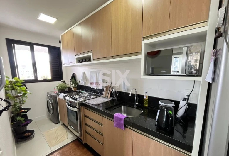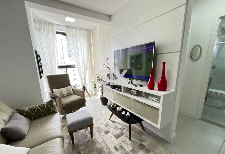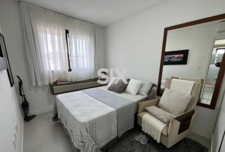 Mobiliado, equipado e climatizado, 2 dormitórios, sendo 1 suíte, living com cozinha integrada e churrasqueira a carvão, área de serviço, banheiro social, 1 vaga de garagem, área privativa: 62 m².