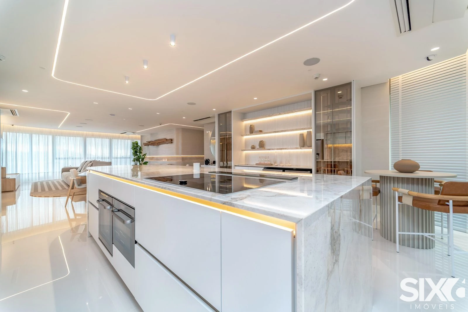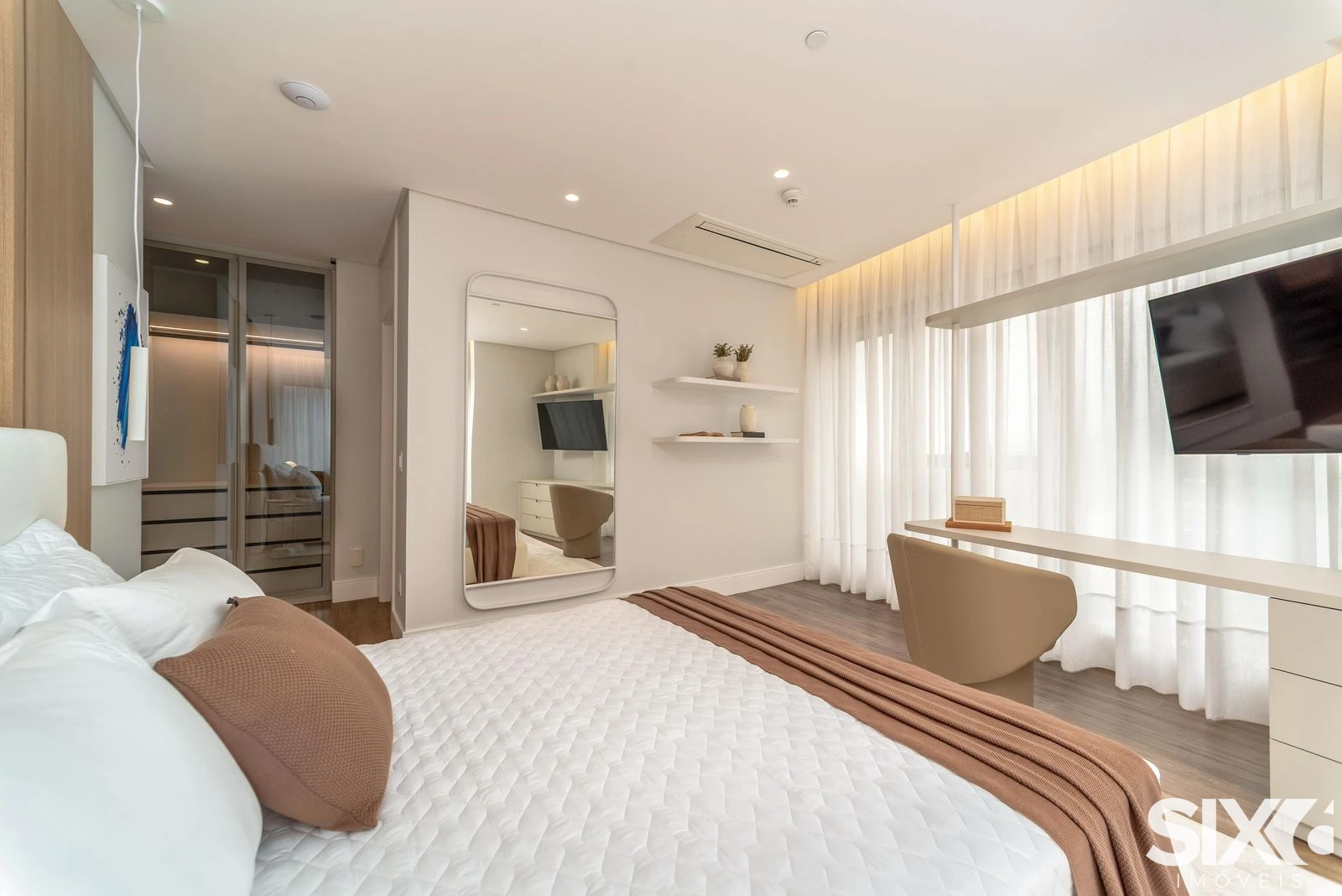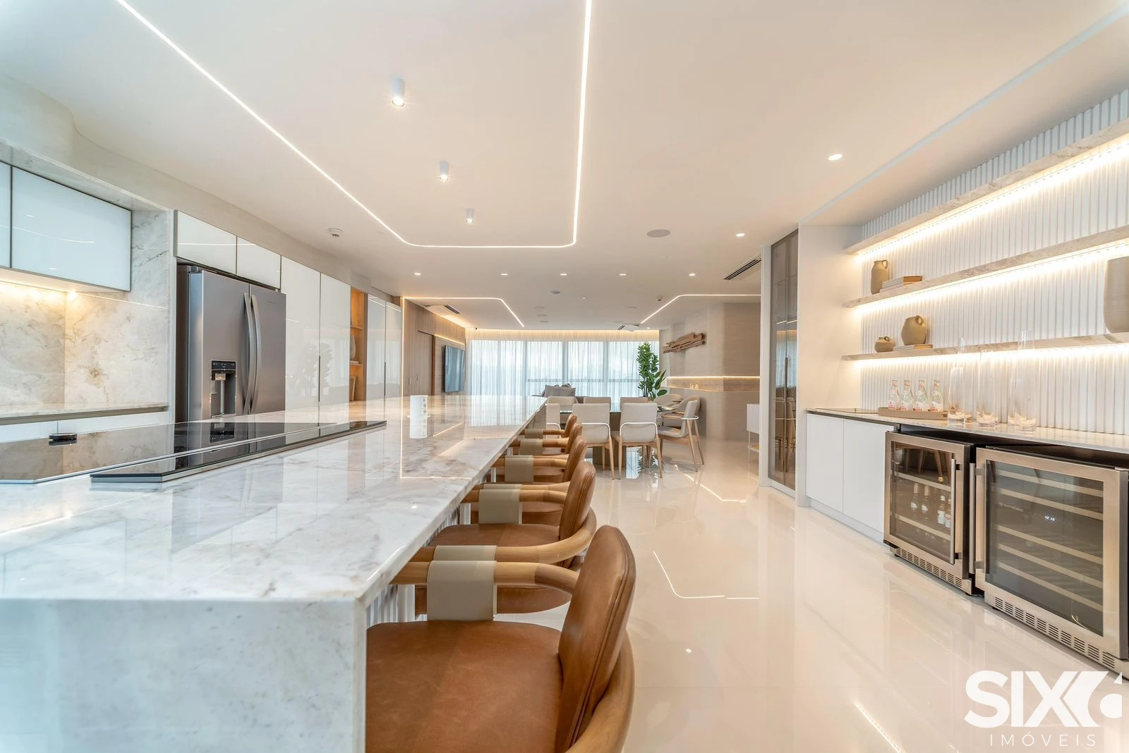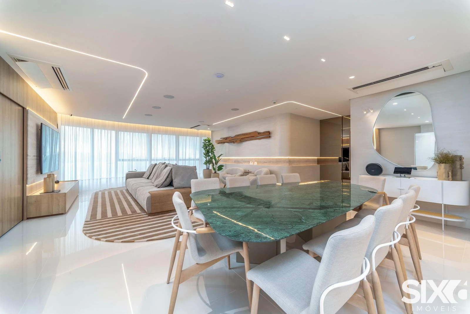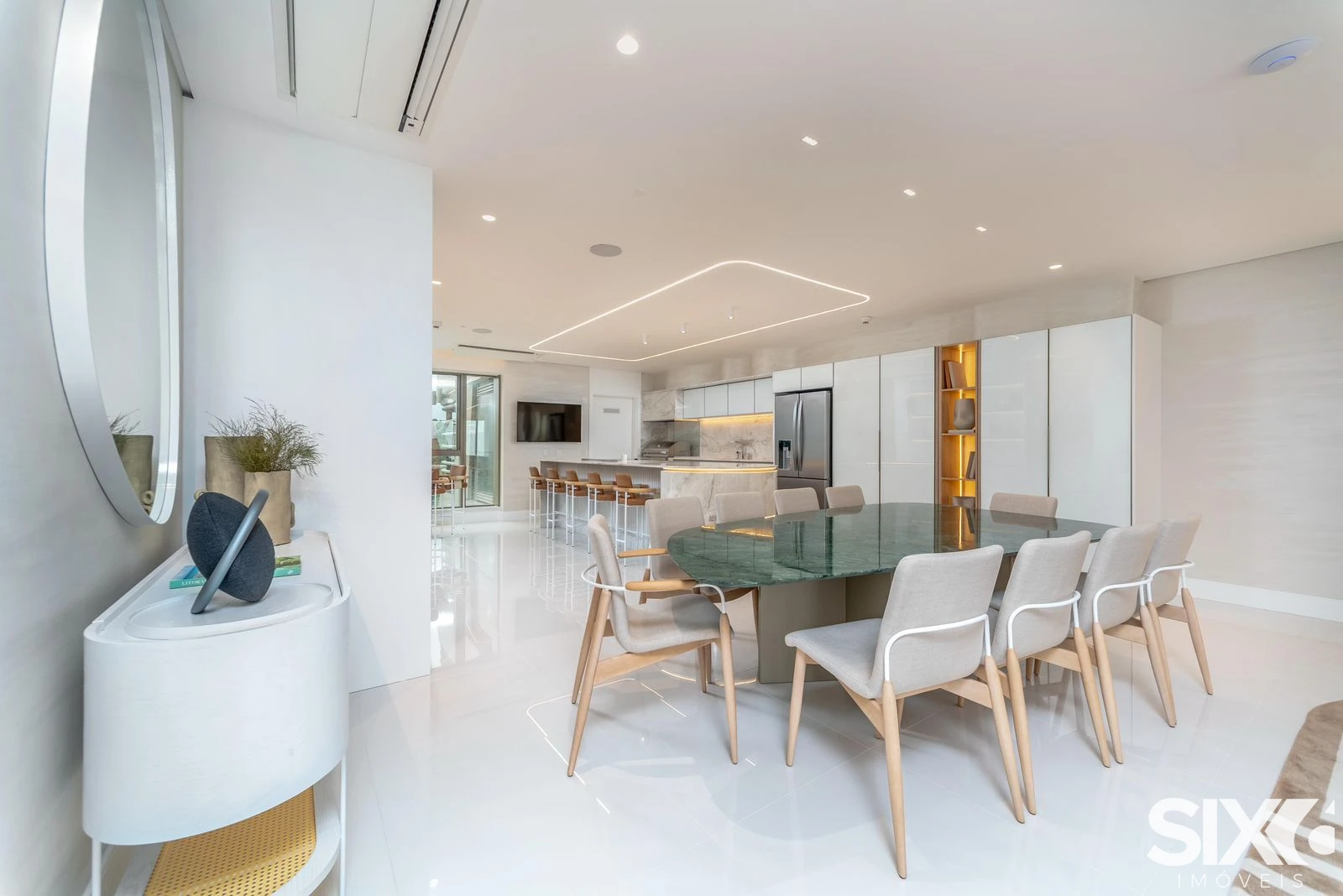 Este apartamento mobiliado oferece 261m² de área privativa, distribuídos em: