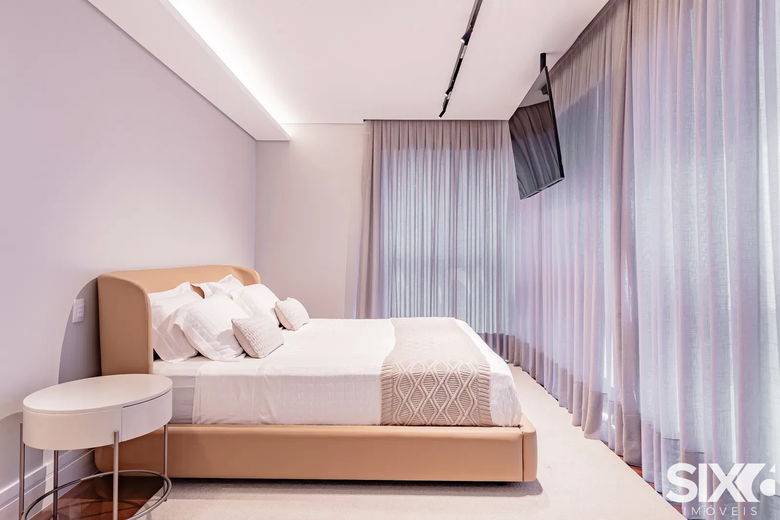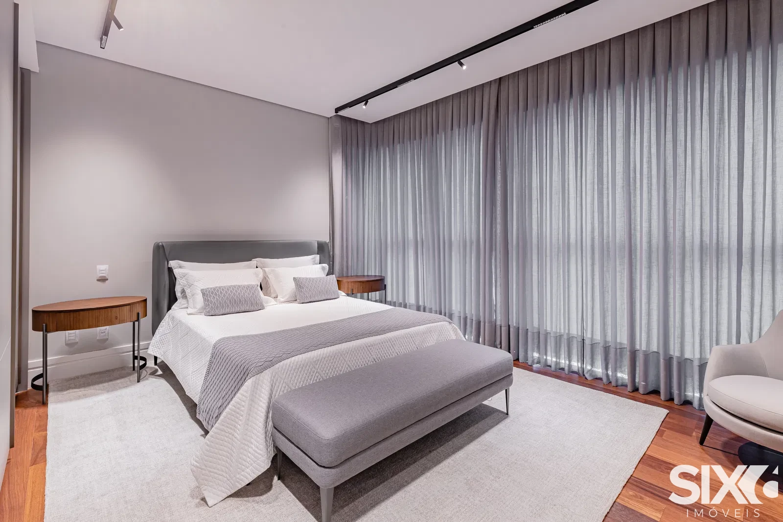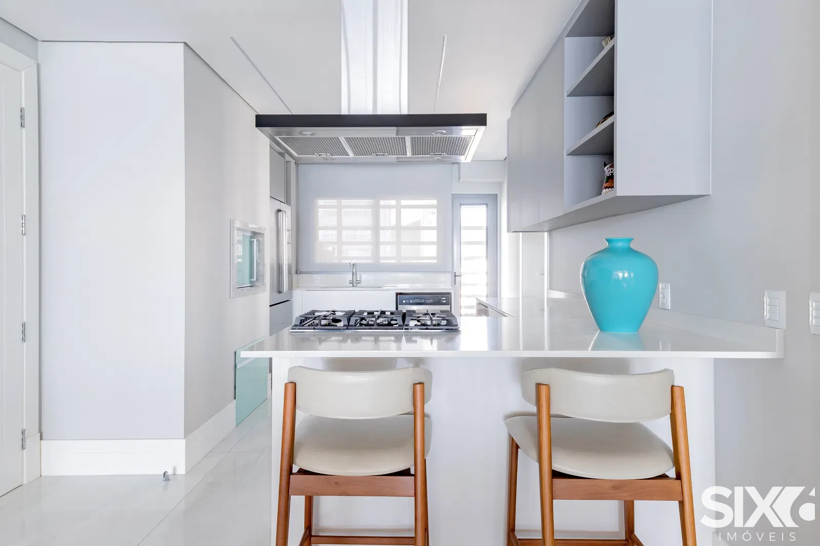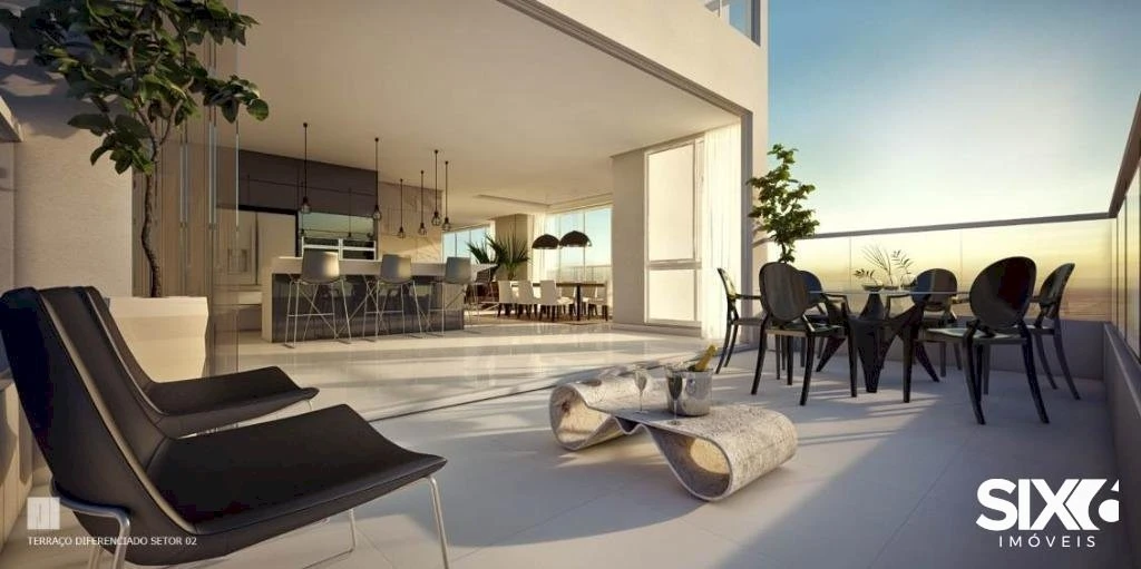 4 suítes amplas, living amplo e integrado, sacada com churrasqueira a carvão, cozinha planejada, área de serviço funcional, lavabo decorado, banheiros modernos, 4 vaga de garagem.