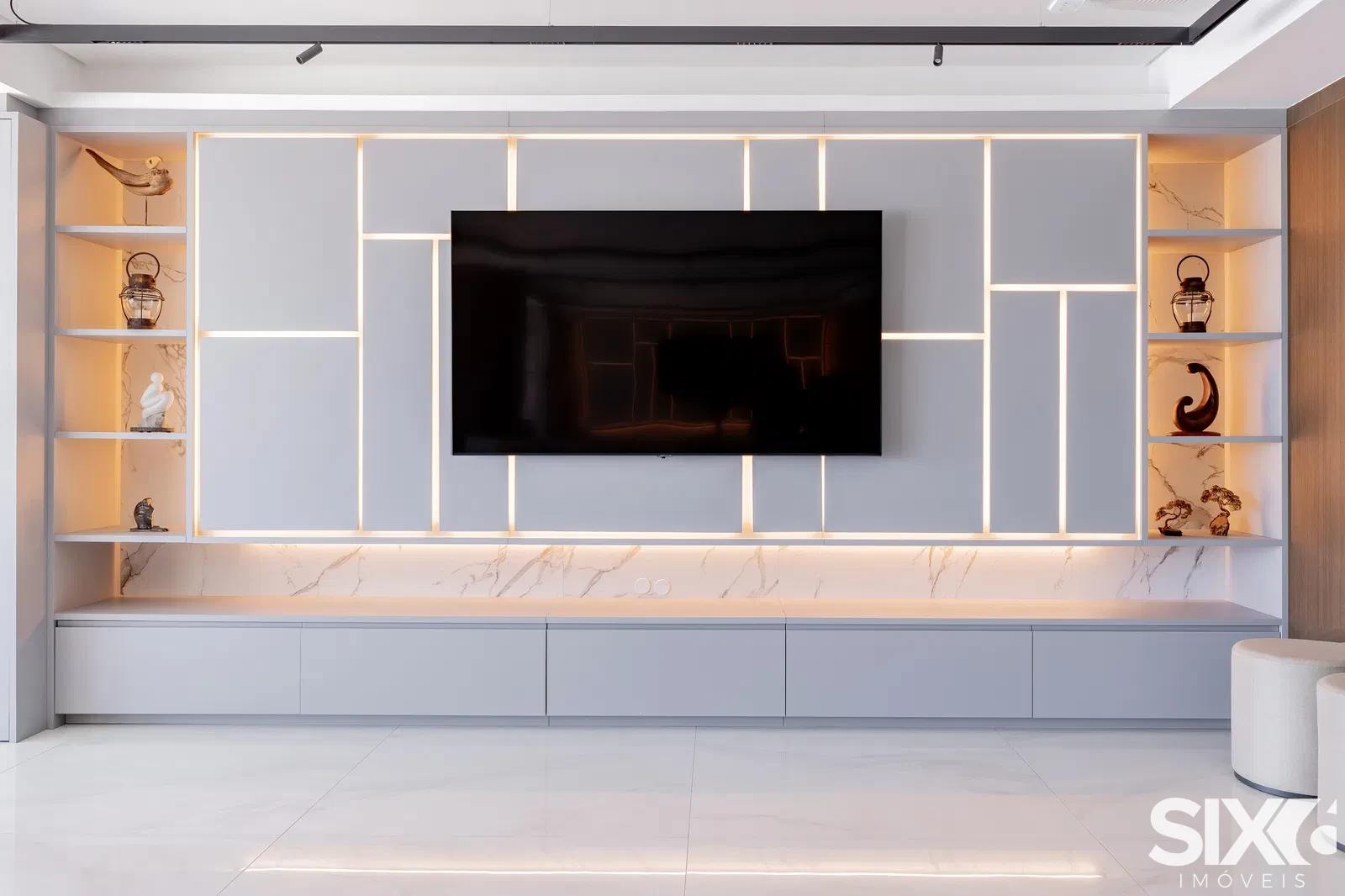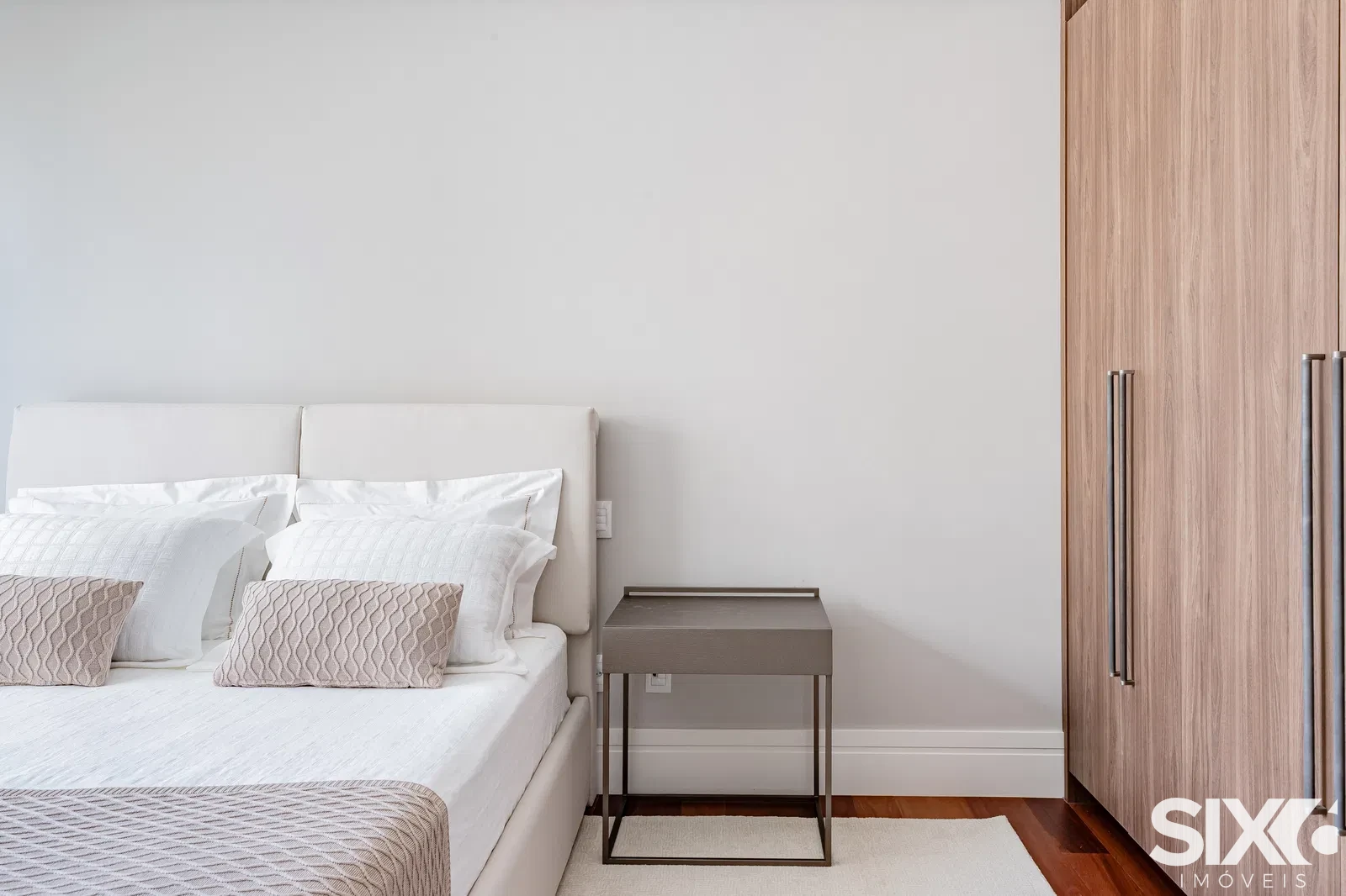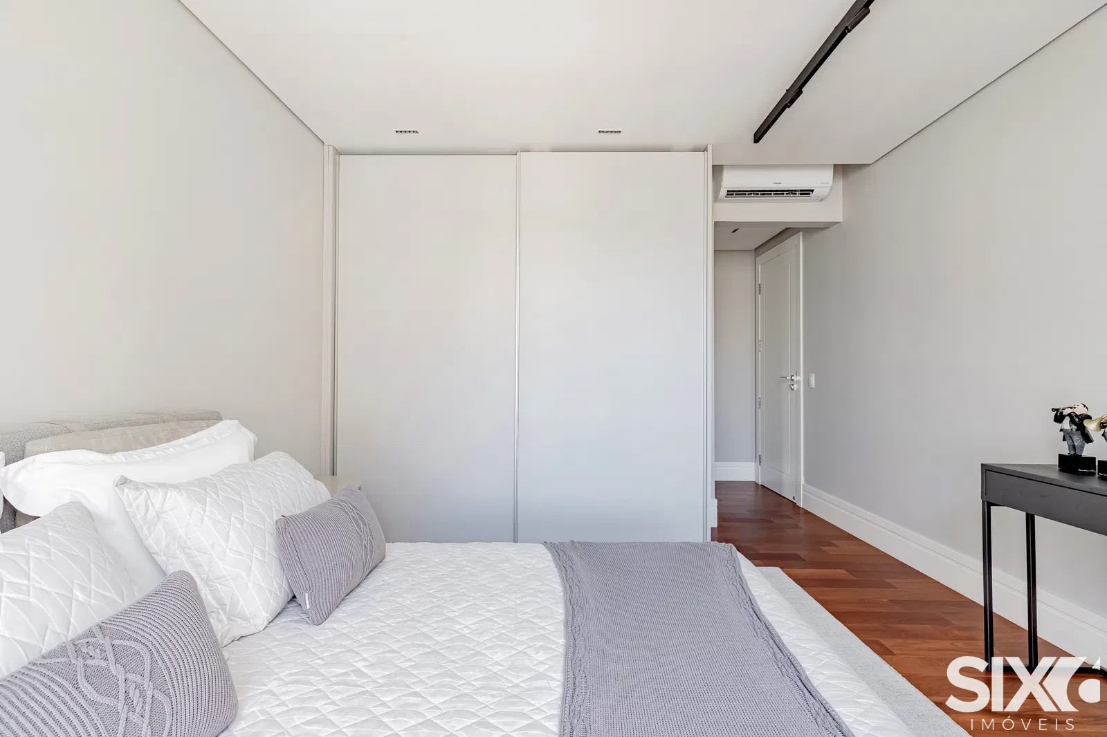 4 suítes amplas, living amplo e integrado, sacada com churrasqueira a carvão, cozinha planejada, área de serviço funcional, lavabo decorado, banheiros modernos, 4 vaga de garagem.