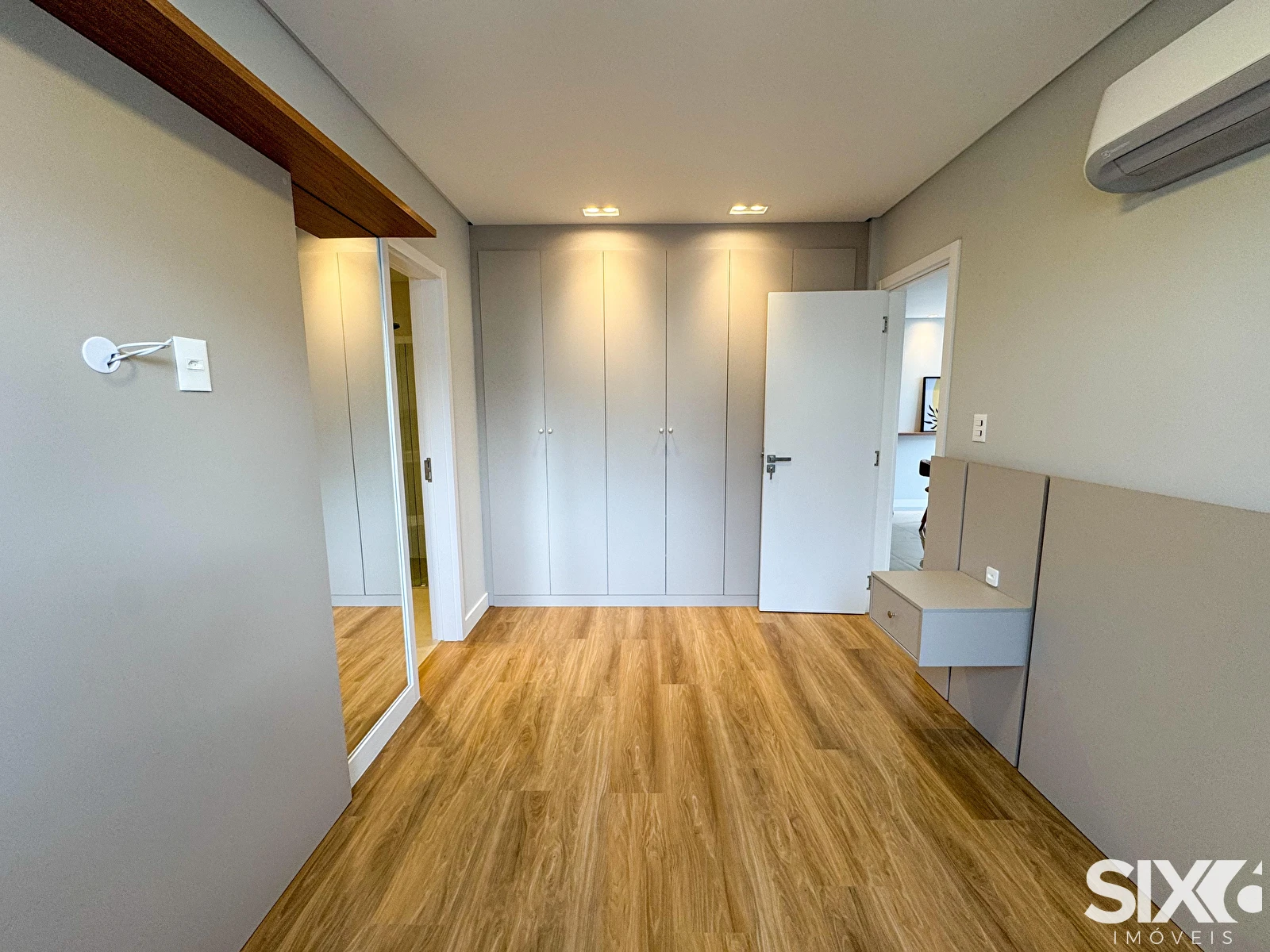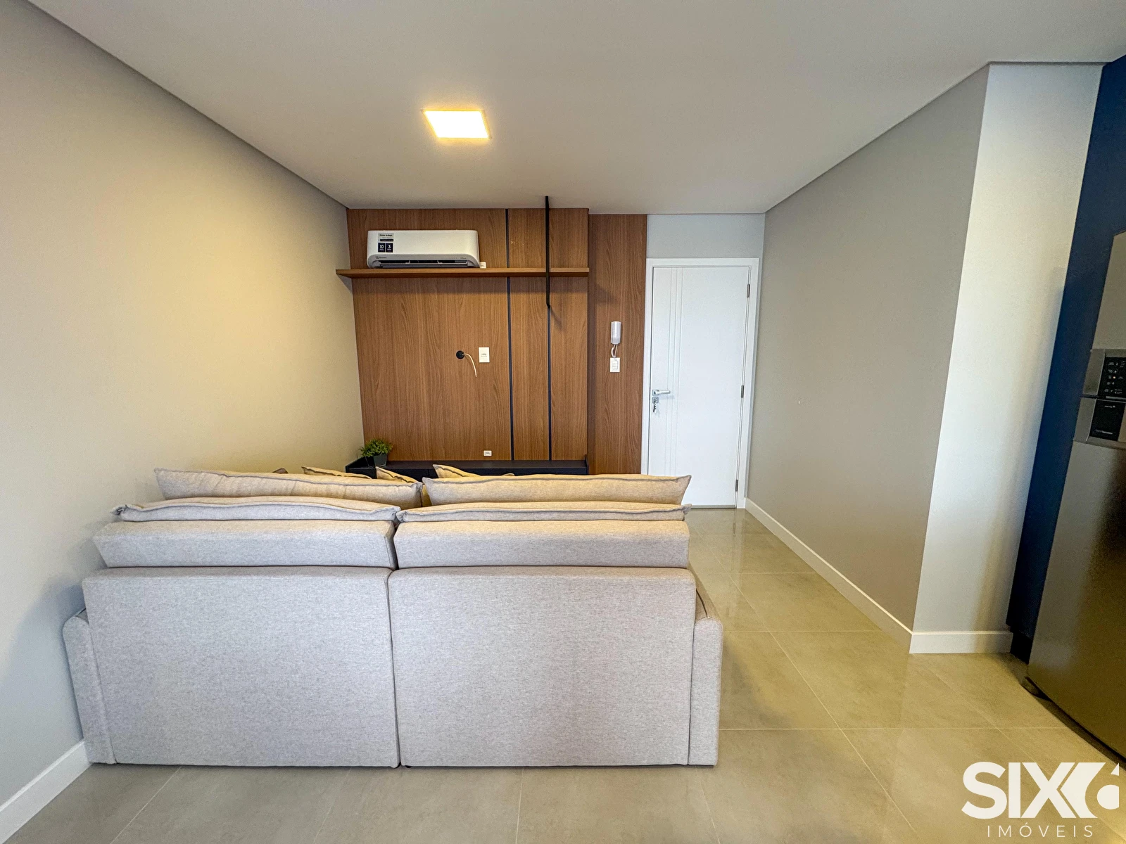 Acabamento em gesso, área de serviço, banheiro social, churrasqueira, ar consicionado, gás individual, hidrômetro individual, infraestrutura para água quente, interfone, lavabo, living, porcelanato.