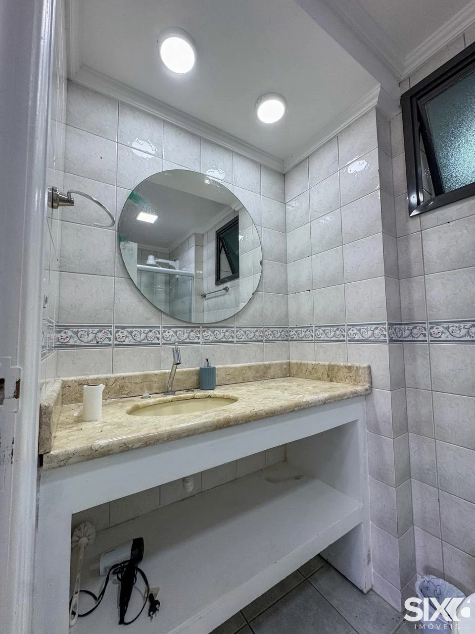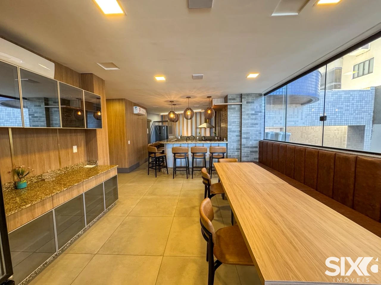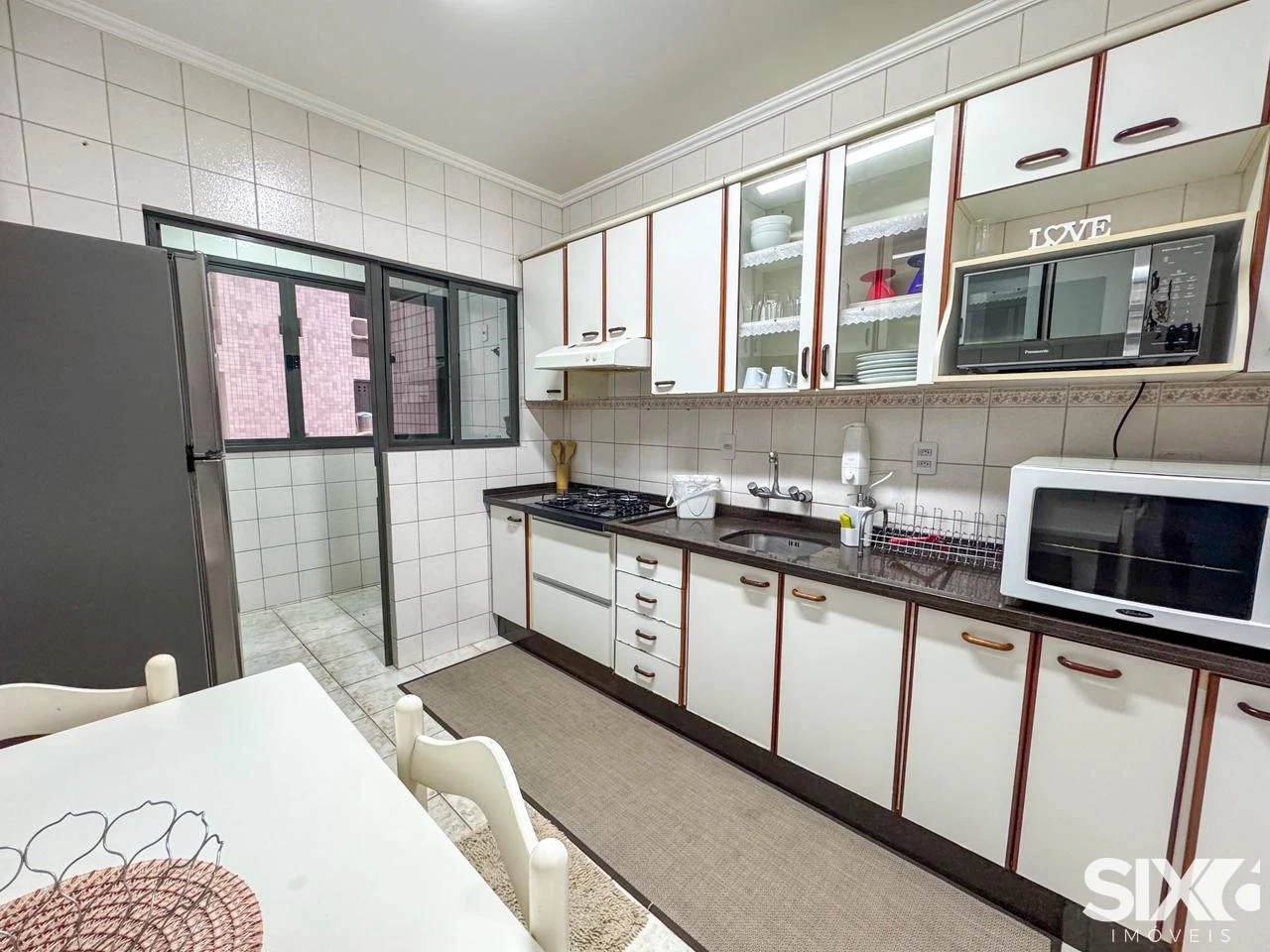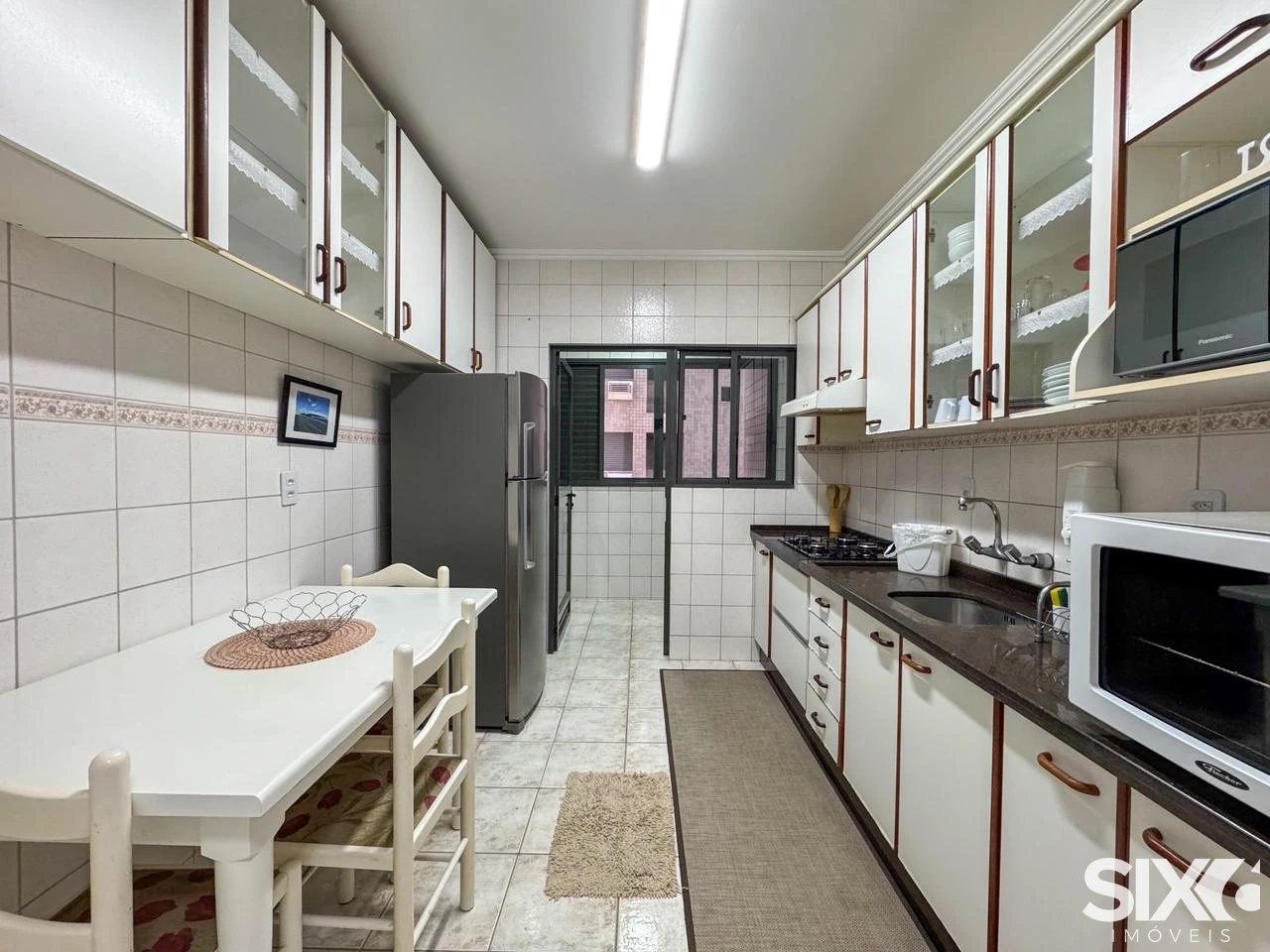 01 suíte ampla, 02 dormitórios confortáveis, lavabo, living integrado, sala de estar aconchegante, sala de jantar espaçosa, Cozinha, sacada com vista frontal para o mar, área de serviço separada, 01 vagas de garagem privativas.