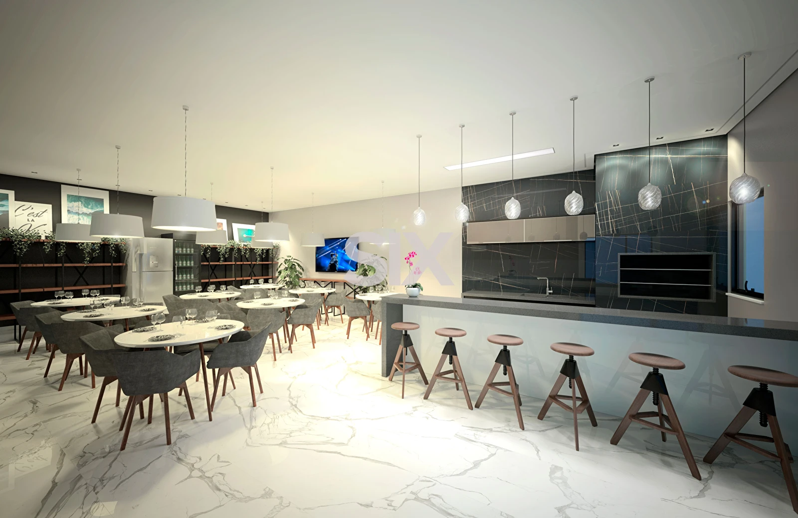 Academia, salão de festas, espaço business, pet place, brinquedoteca.
