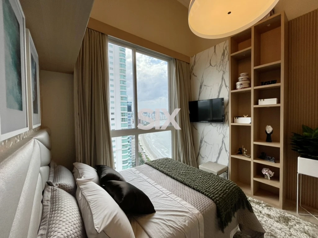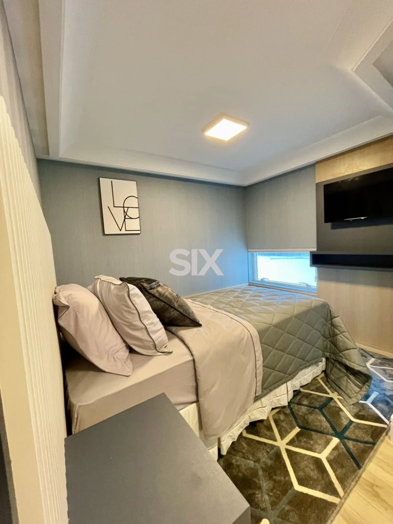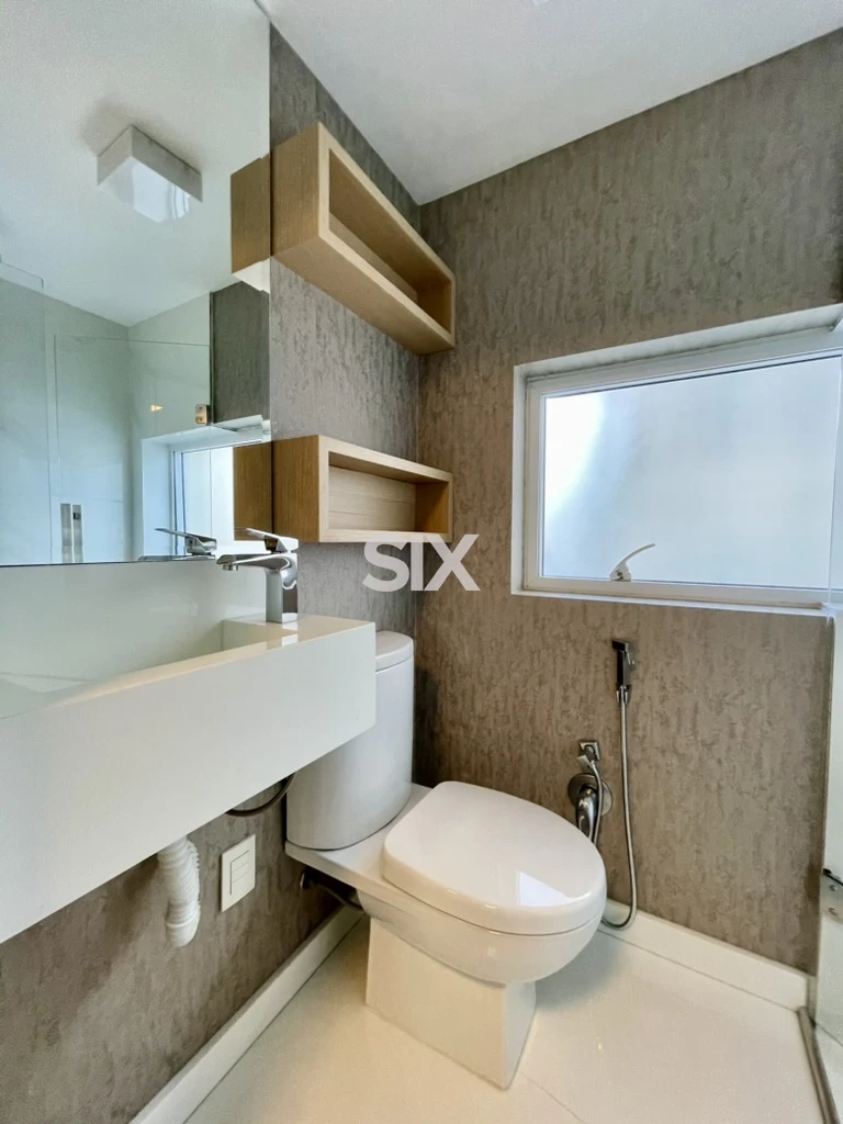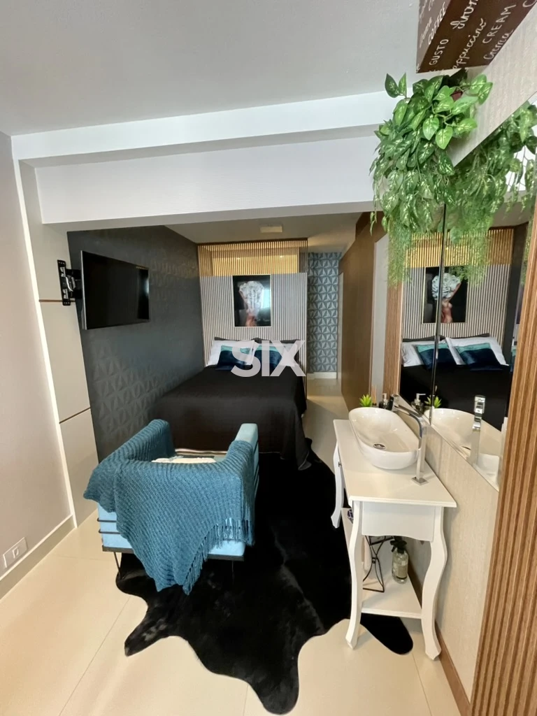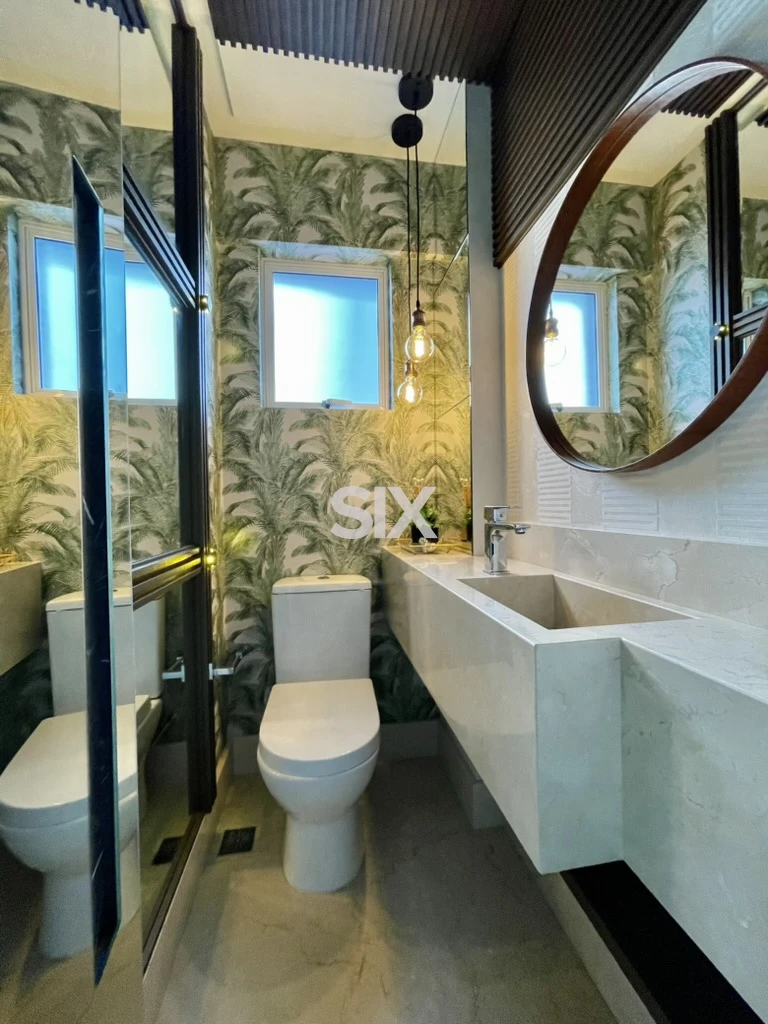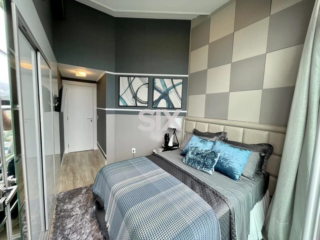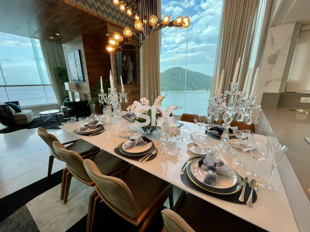 Suíte Master de 90 m² com Hidro com Cromoterapia e Sacada, área de festa com cozinha completa e churrasqueira (com paredes laterais de vidro duplos laminado e temperado), piscina embutida no chão com aquecimento solar e trocador de calor (com teto retrátil com proteção UV), varanda.
