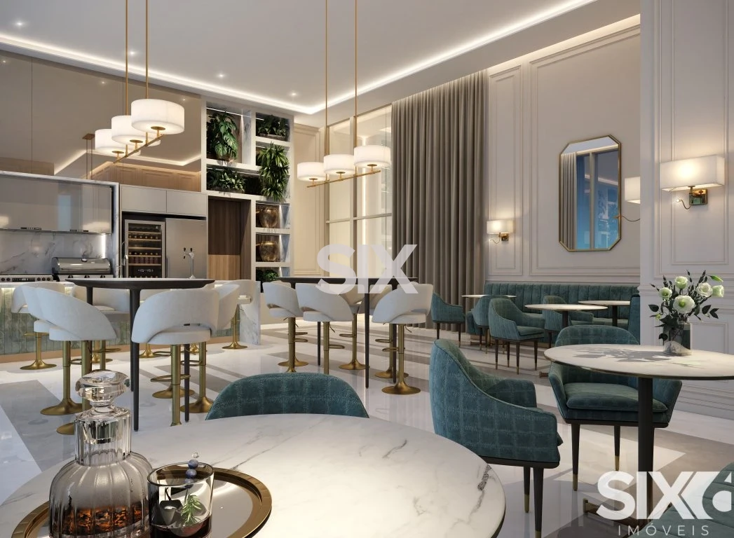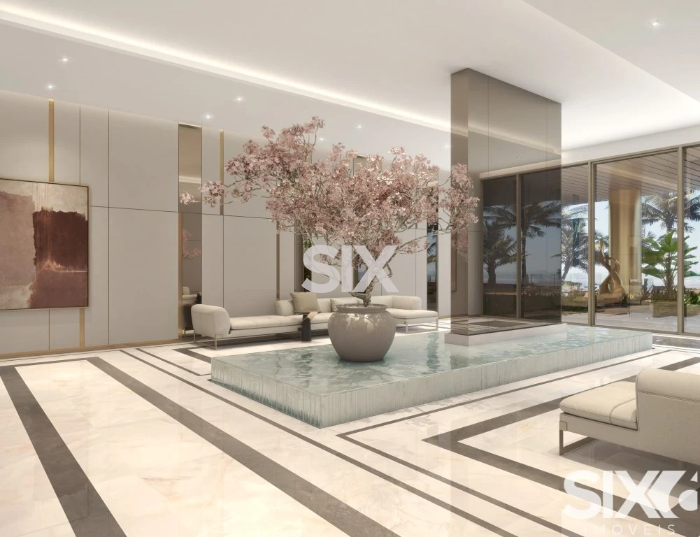 Apartamentos 502,72m², 06 suítes, sendo uma master com banheira de hidromassagem, lavabo, área de serviço separada com banheiro, depósito, cozinha americana com espaço gourmet, living com sacada integrada, 06 vagas de garagem.